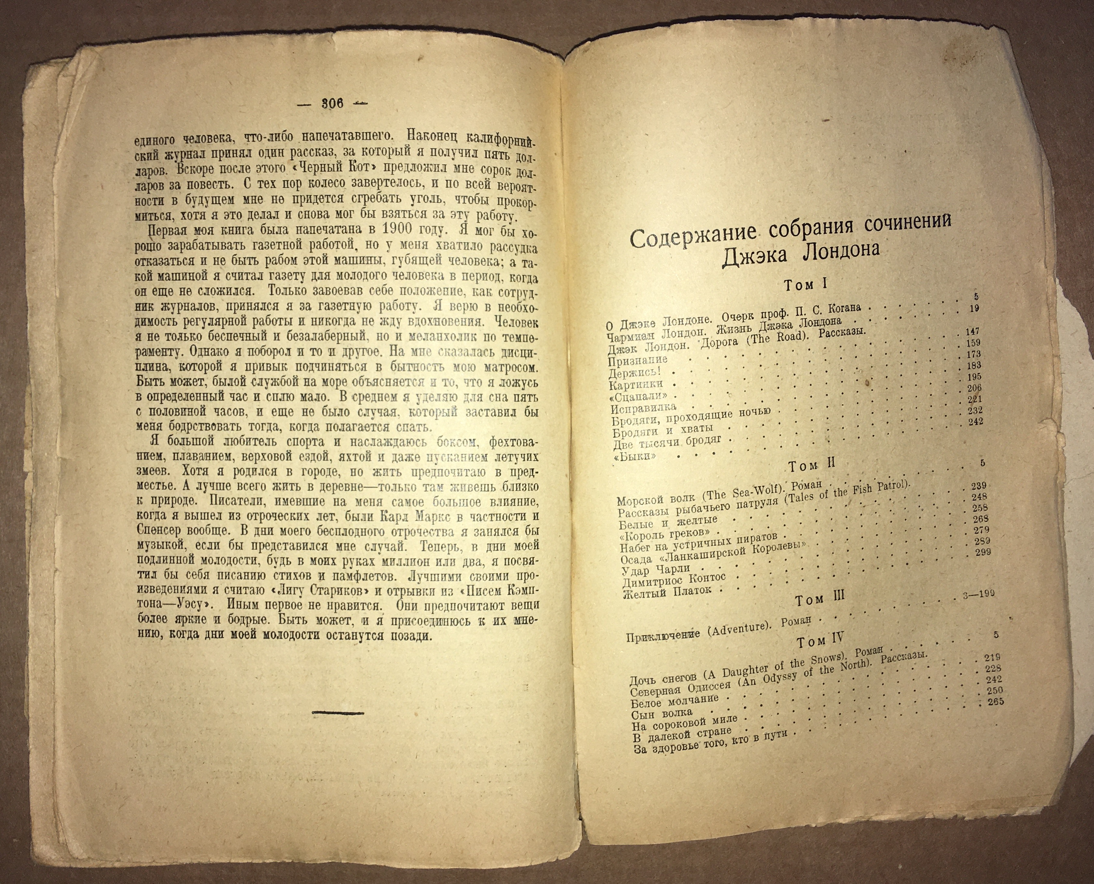 Москва, 1928-1929 гг. Издательство «Земля и фабрика». Приложение к журналу «Всемирный следопыт». Издание с портретом автора. Владельческие переплеты. Сохранность хорошая. Книги реставрированы. Джек Лондон (1876-1916) был и остается одним из самых популярных иностранных писателей. Читатели любят его книги за их жизнеутверждающий оптимизм, за мужество и целеустремленность героев, за прославление в них героического начала в человеке. Сила и страсть писательской натуры, знание правды и незаурядное литературное мастерство заставляют все новые поколения читателей переживать события, которые происходят с героями Джека Лондона. Вниманию читателей предлагается редкое собрание сочинений Джека Лондона в 24 томах (два тома в одной книге). В него вошли почти все художественные произведения писателя, за исключением поэзии, некоторых рассказов, очерков и драматургии. Содержание: Том 1 П.С. Коган «О Джеке Лондоне» Чармиан Лондон «Жизнь Джека Лондона» Джек Лондон «Дорога». Рассказы Том 2 Морской волк Рассказы рыбачьего патруля Том 3 Приключение. Роман Том 4 Дочь снегов. Роман Северная Одиссея. Рассказы Том 5 Смок Беллью. Рассказы Смок и Малыш. Рассказы Том 6 Игра. Повесть Первобытный зверь. Повесть Сила сильных. Рассказы Том 7 Путешествие на «Снарке». Путевые очерки На циновке Макалоа. Рассказы Том 8 Сердца трех. Роман Том 9 Джерри-островитянин. Роман Майкель, брат Джерри. Повесть Том 10 Сын солнца. Рассказы Принцесса. Рассказы Том 11 Зов предков. Повесть Белый клык. Роман До Адама. Повесть Том 12 Межзвездный скиталец. Повесть Алая чума. Повесть Вечные формы и другие рассказы Том 13 Мартин Идэн. Роман Том 14 Дети мороза. Рассказы Бог его отцов. Рассказы Том 15 Мятеж на «Эльсиноре». Роман Том 16 Путешествие на «Ослепительном». Повесть Голландская доблесть. Рассказы Сказки южных морей. Рассказы Том 17 Вера в человека. Рассказы Лунный лик. Рассказы Том 18 Лунная долина. Роман Том 19 Потерянный лик. Рассказы Любовь к жизни. Рассказы Храм гордыни. Рассказы Том 20 День пламенеет. Роман Том 21 Рожденная в ночи. Рассказы Когда боги смеются. Рассказы Том 22 Маленькая хозяйка большого дома. Роман Черепахи Тэсмана. Рассказы Том 23 Железная пята. Роман Люди бездны. Очерки Том 24 Джон Ячменное Зерно. Воспоминания алкоголика. Повесть Письма Кэмптона — Уэсу. Повесть Черри. Незаконченная повесть Джек Лондон о себе