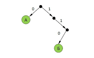 2) Построим дерево для заданных кодовых слов А – 0, Б – 110: