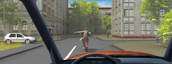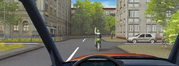 - 3. О его намерении снизить скорость, чтобы остановиться и уступить дорогу мотоциклисту.