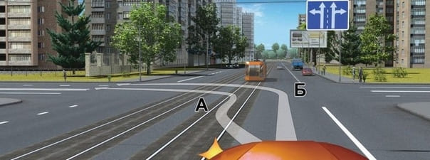 - 2. Только перед перекрестком — по траектории Б.