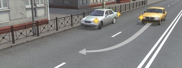 - 1. Включить левые указатели поворота, затем приступить к маневру.