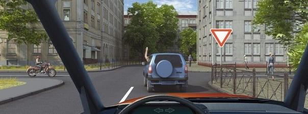- 3. О его намерении остановиться, чтобы уступить дорогу мотоциклисту.
