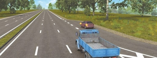 - 1. Не должен создавать помех движущемуся по правой полосе автомобилю.