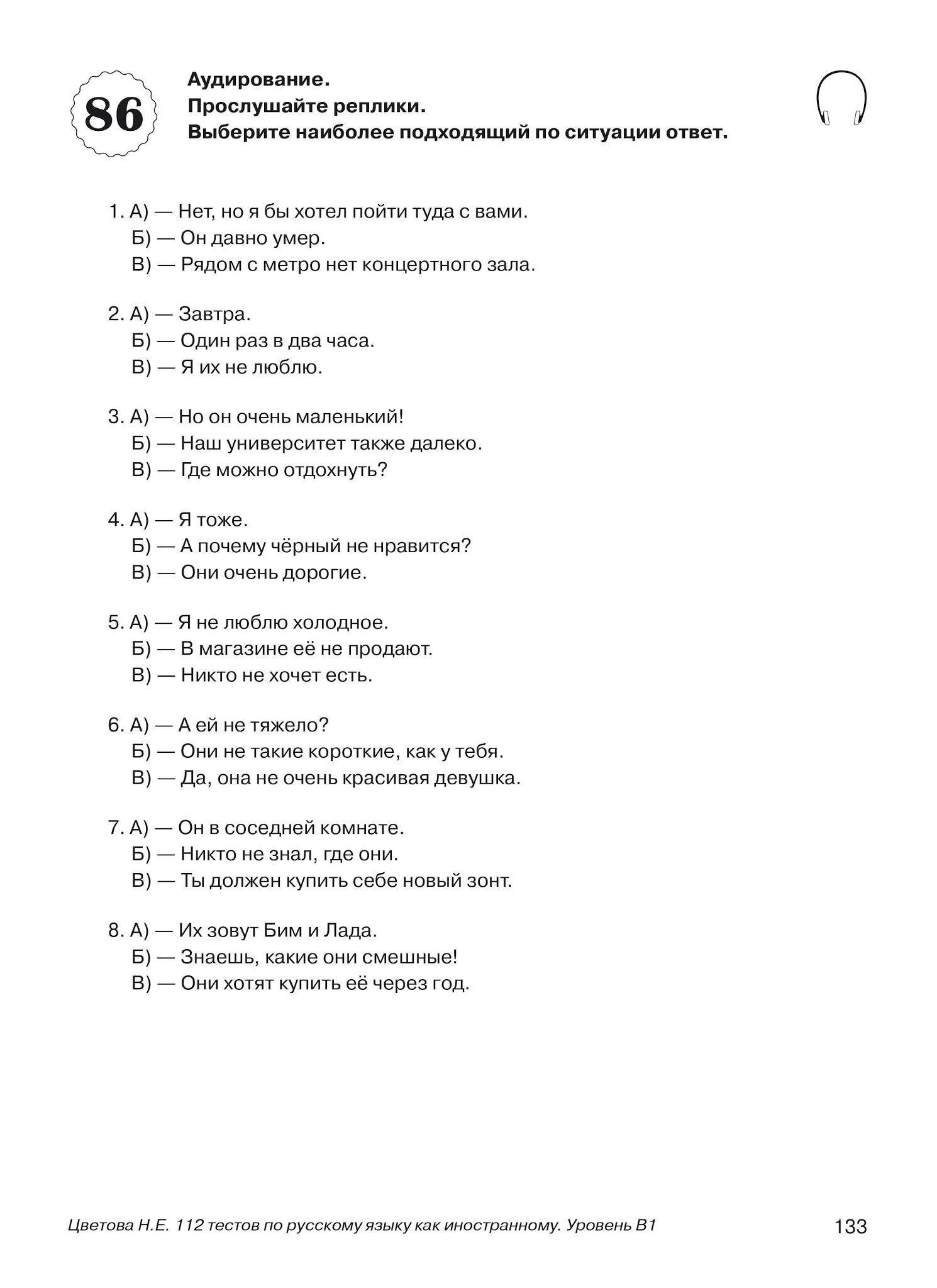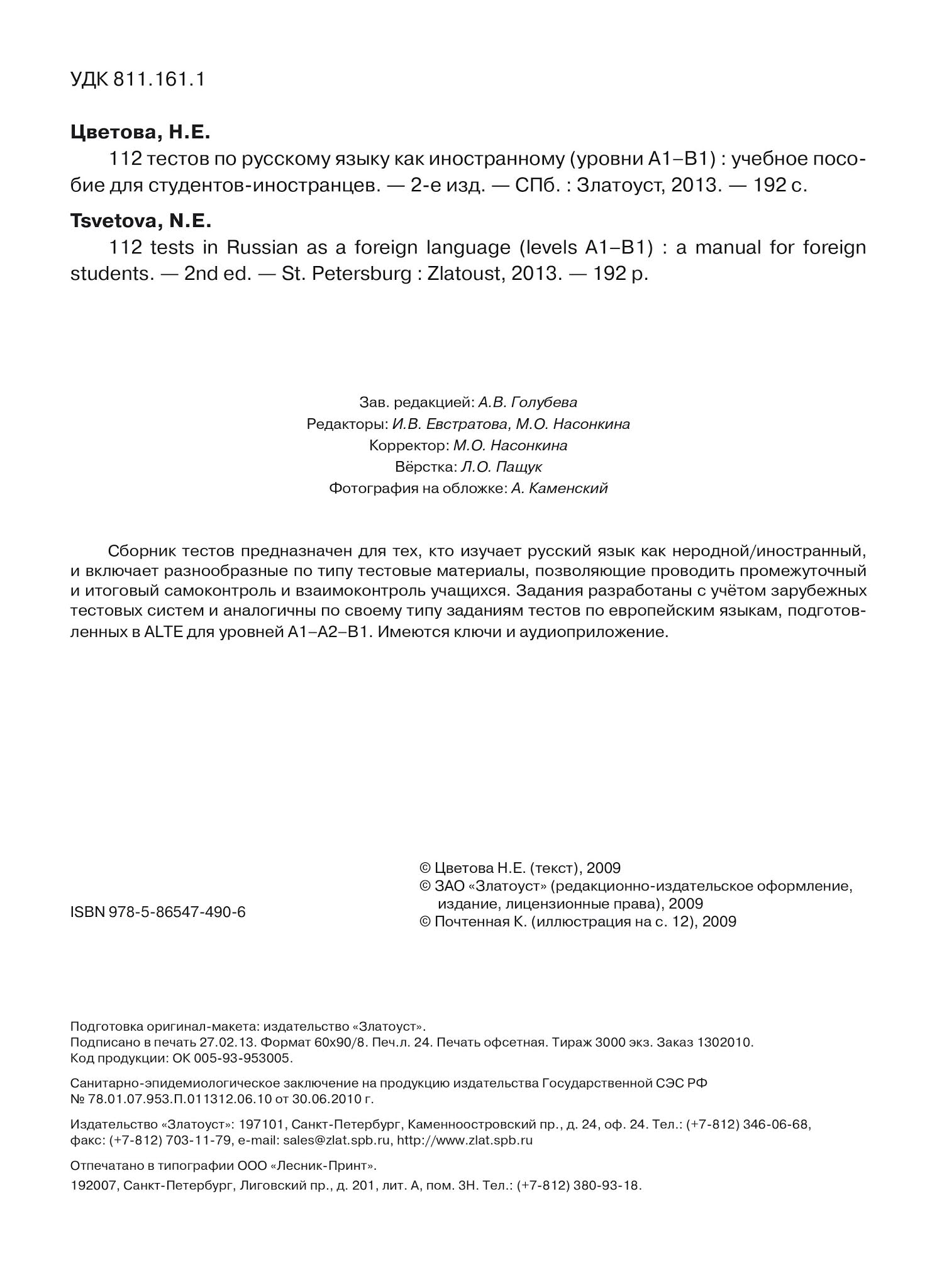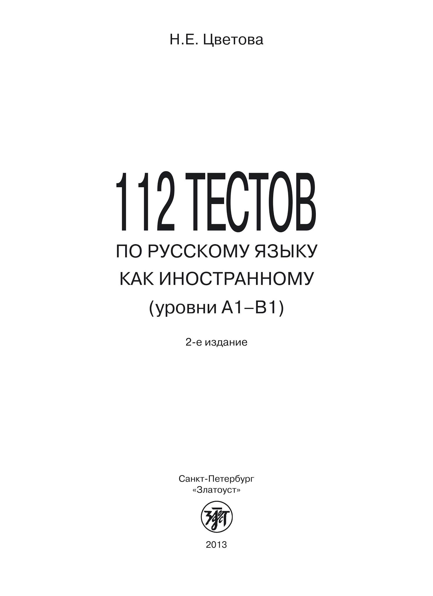 112 тестов по русскому языку как иностранному (уровни А1–В1): учебное пособие для студентов-иностранцев. — 3-е изд. — СПб. : Златоуст, 2018. — 188с.
