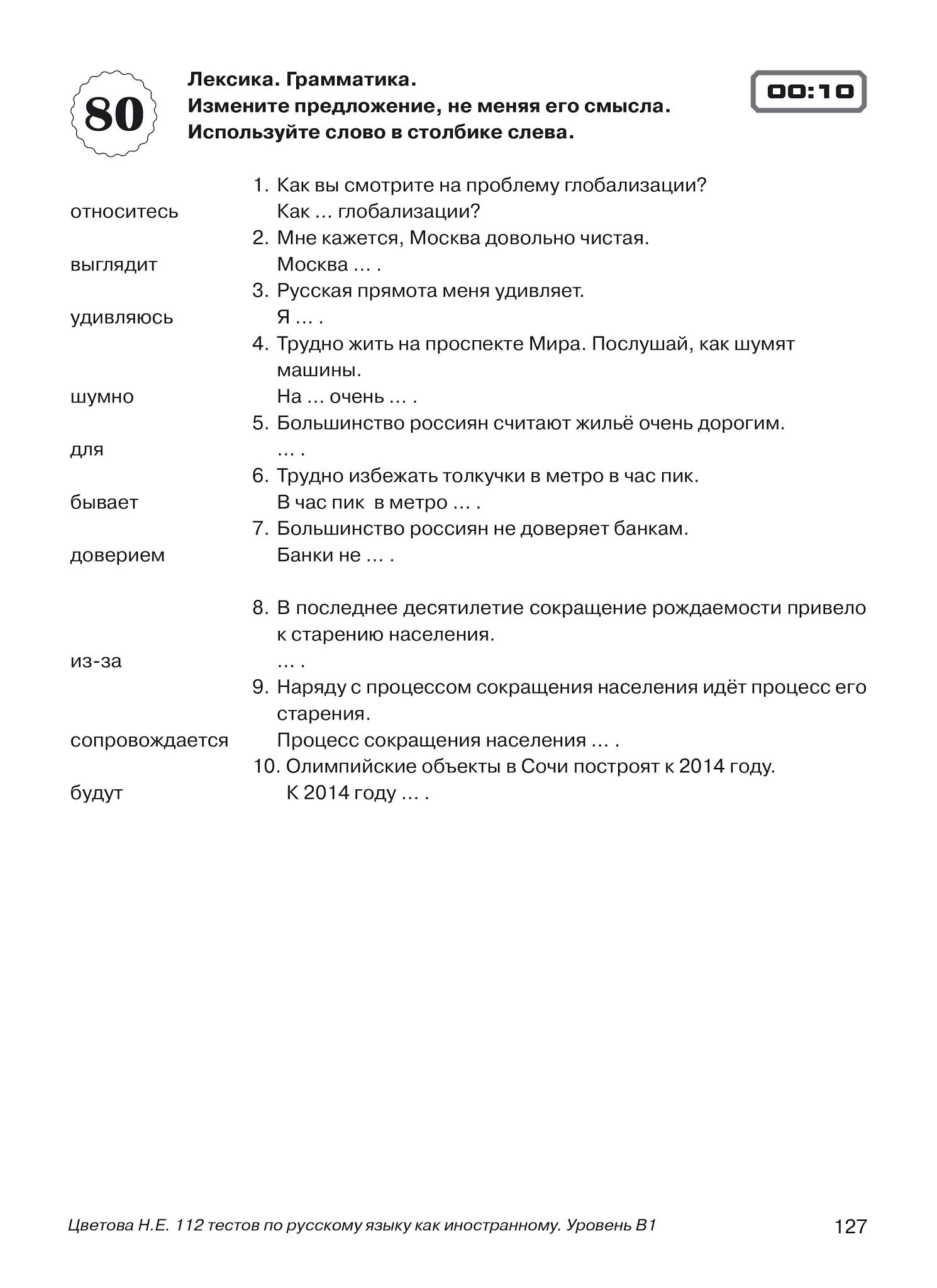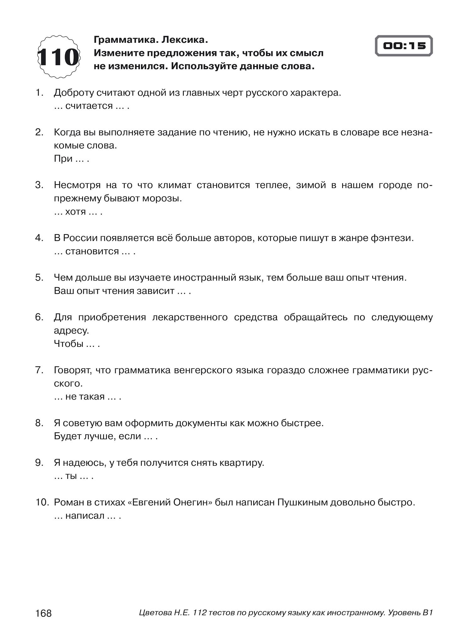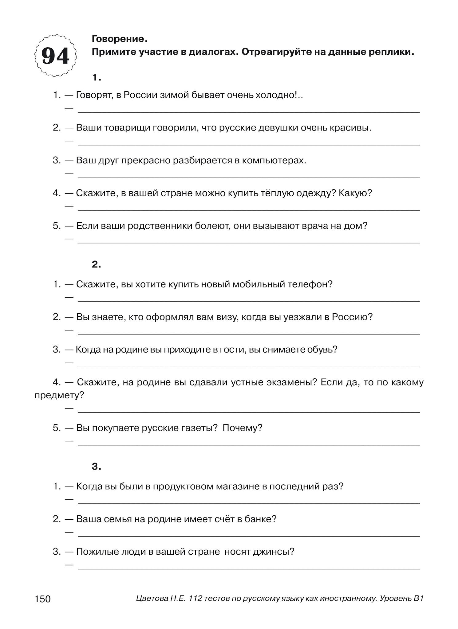 112 тестов по русскому языку как иностранному (уровни А1–В1): учебное пособие для студентов-иностранцев. — 3-е изд. — СПб. : Златоуст, 2018. — 188с.