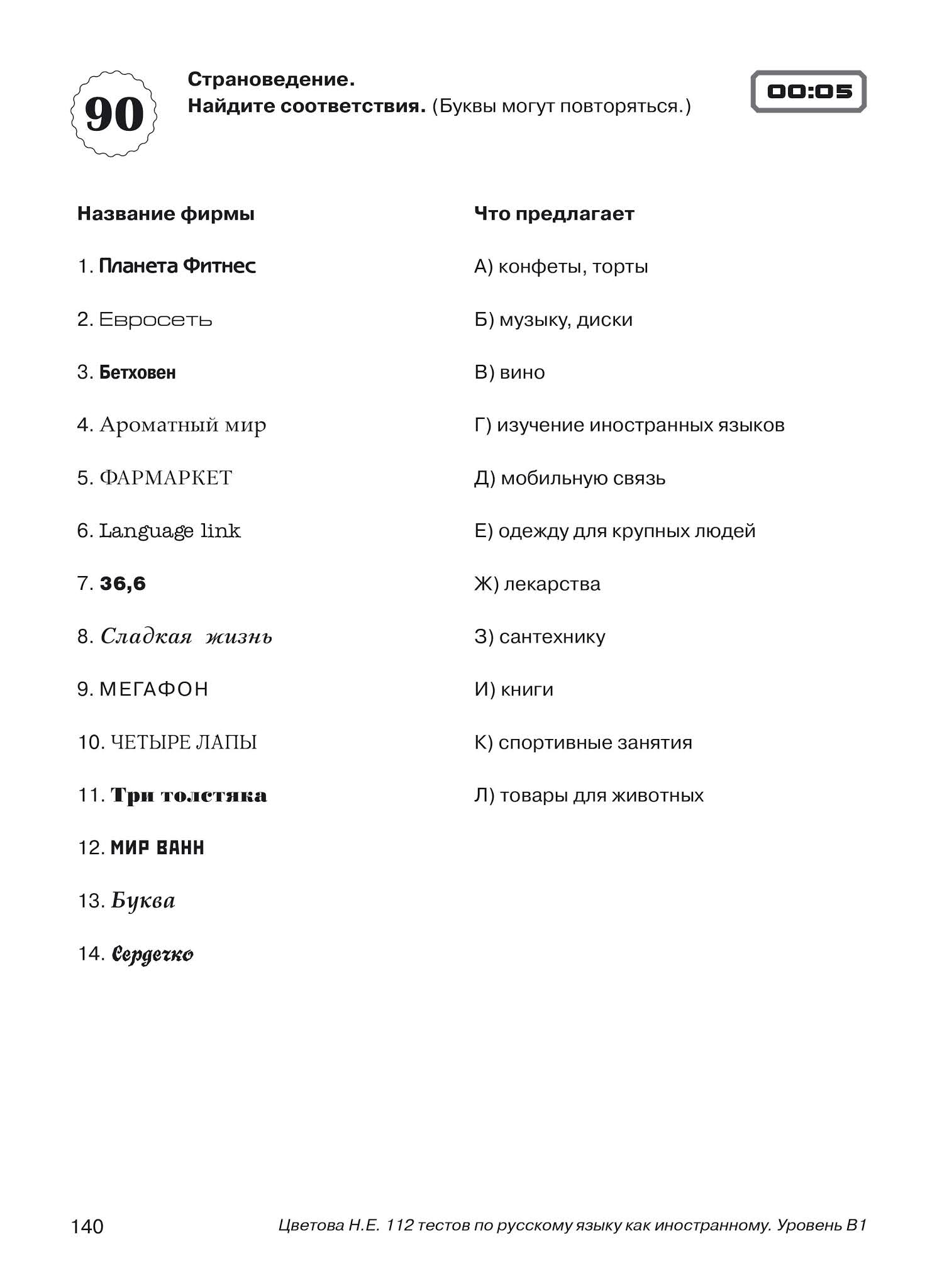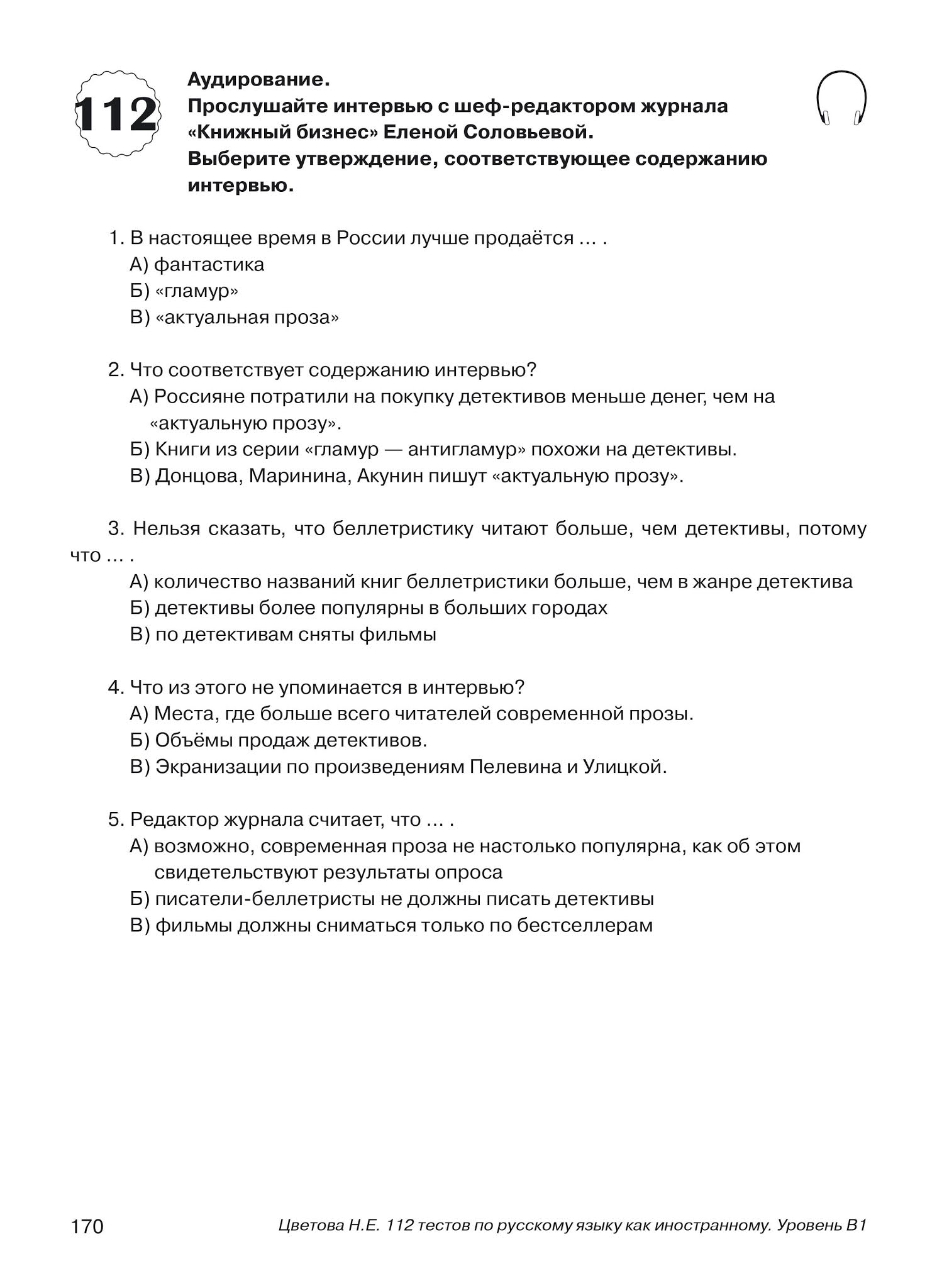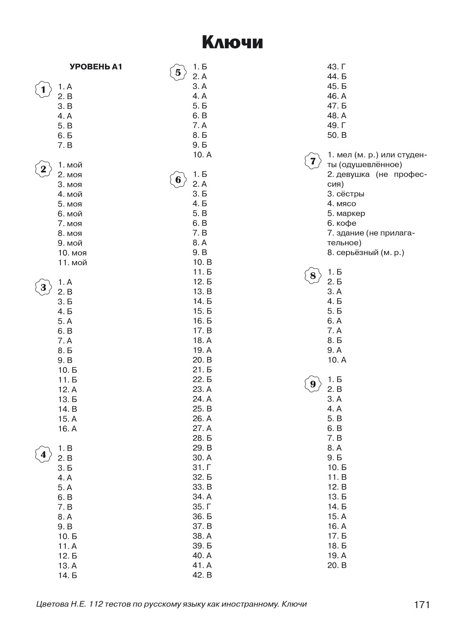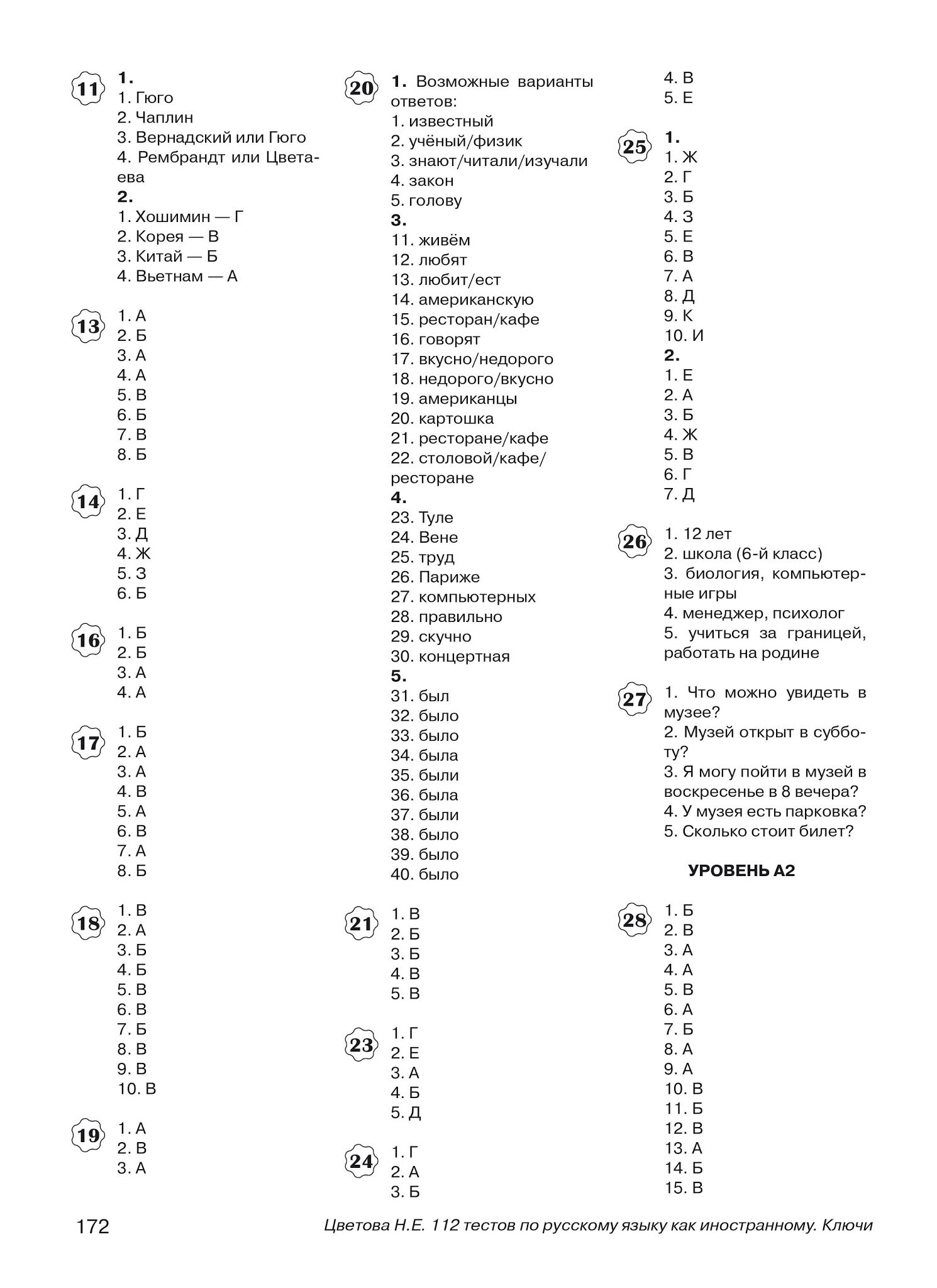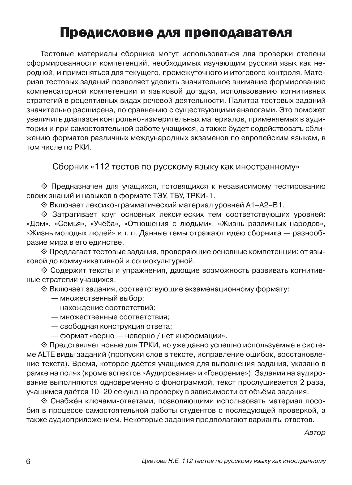 Н.Е.ЦВЕТОВА. 112 тестов по РКИ — А1 -В1