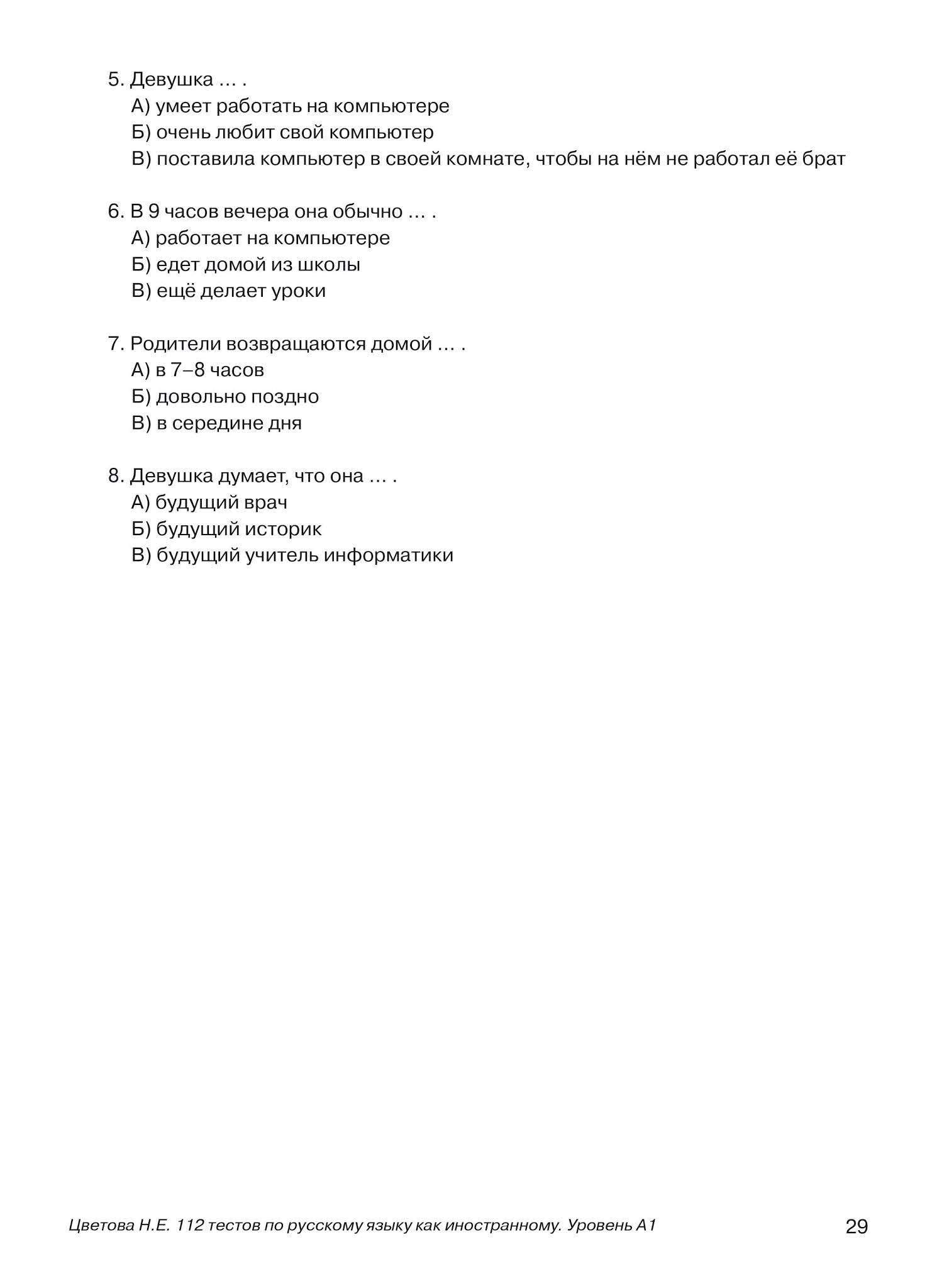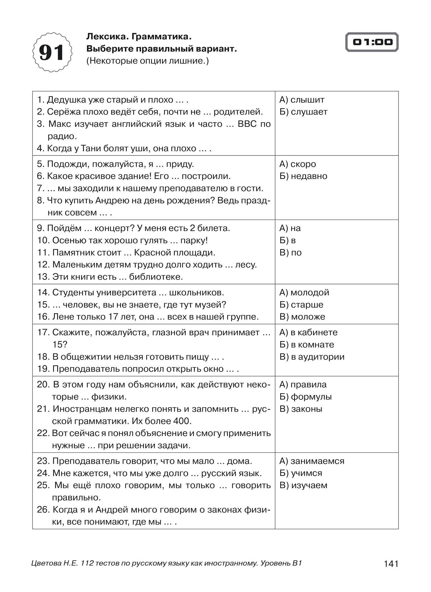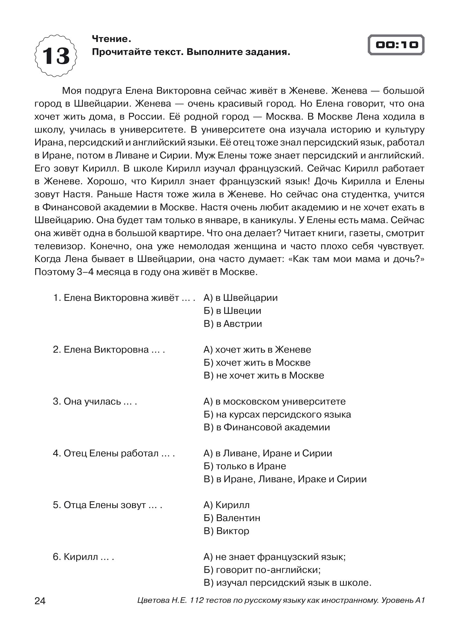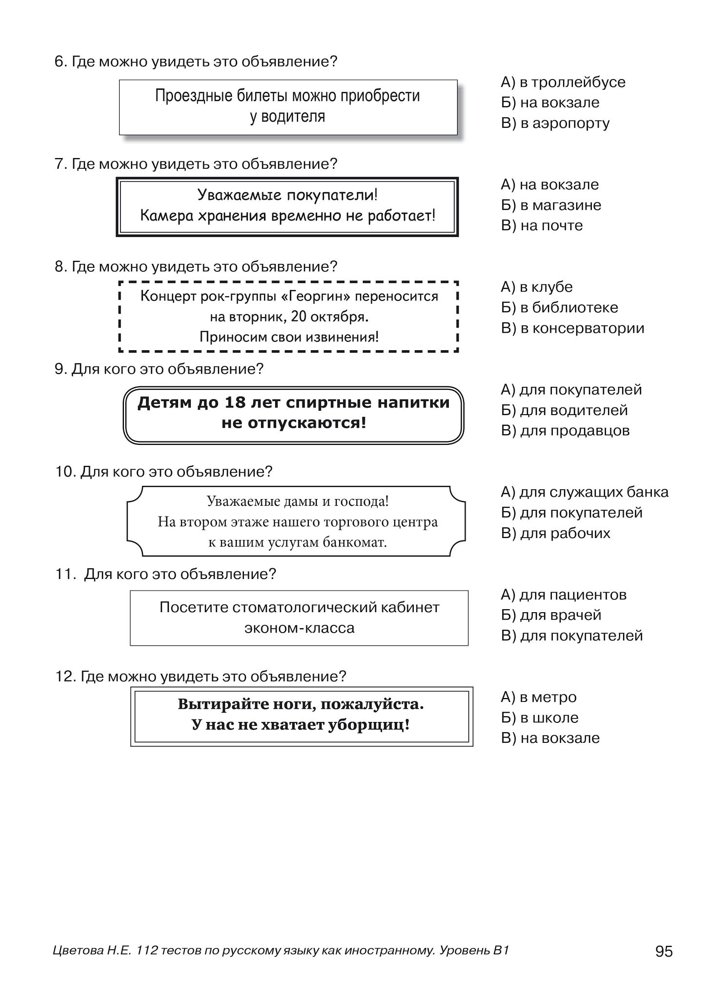 Н.Е.ЦВЕТОВА. 112 тестов по РКИ — А1 -В1