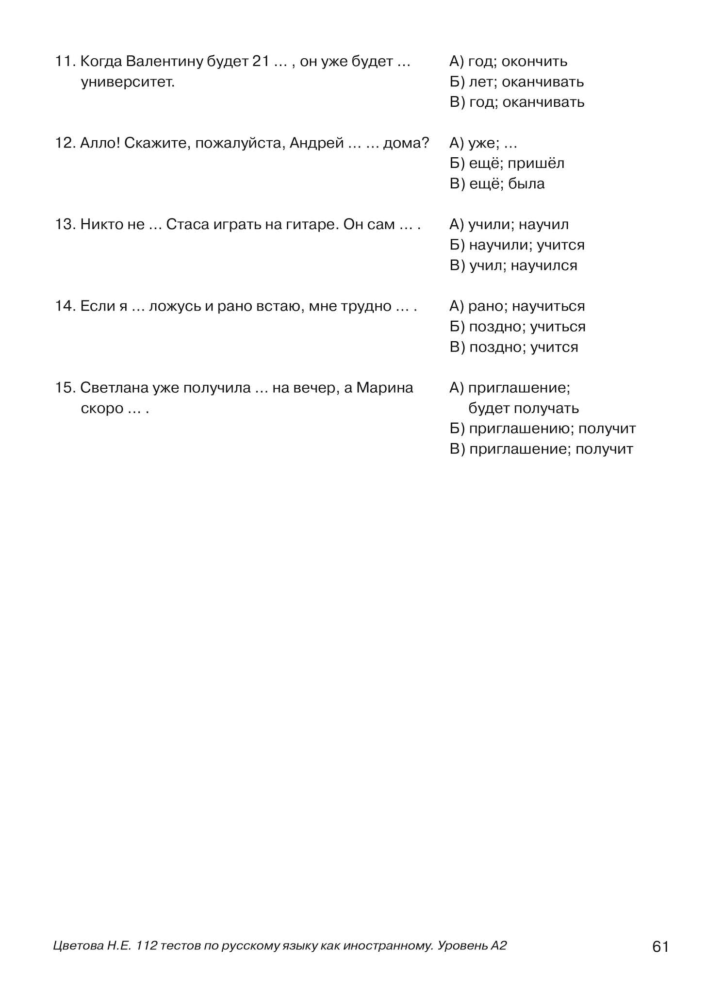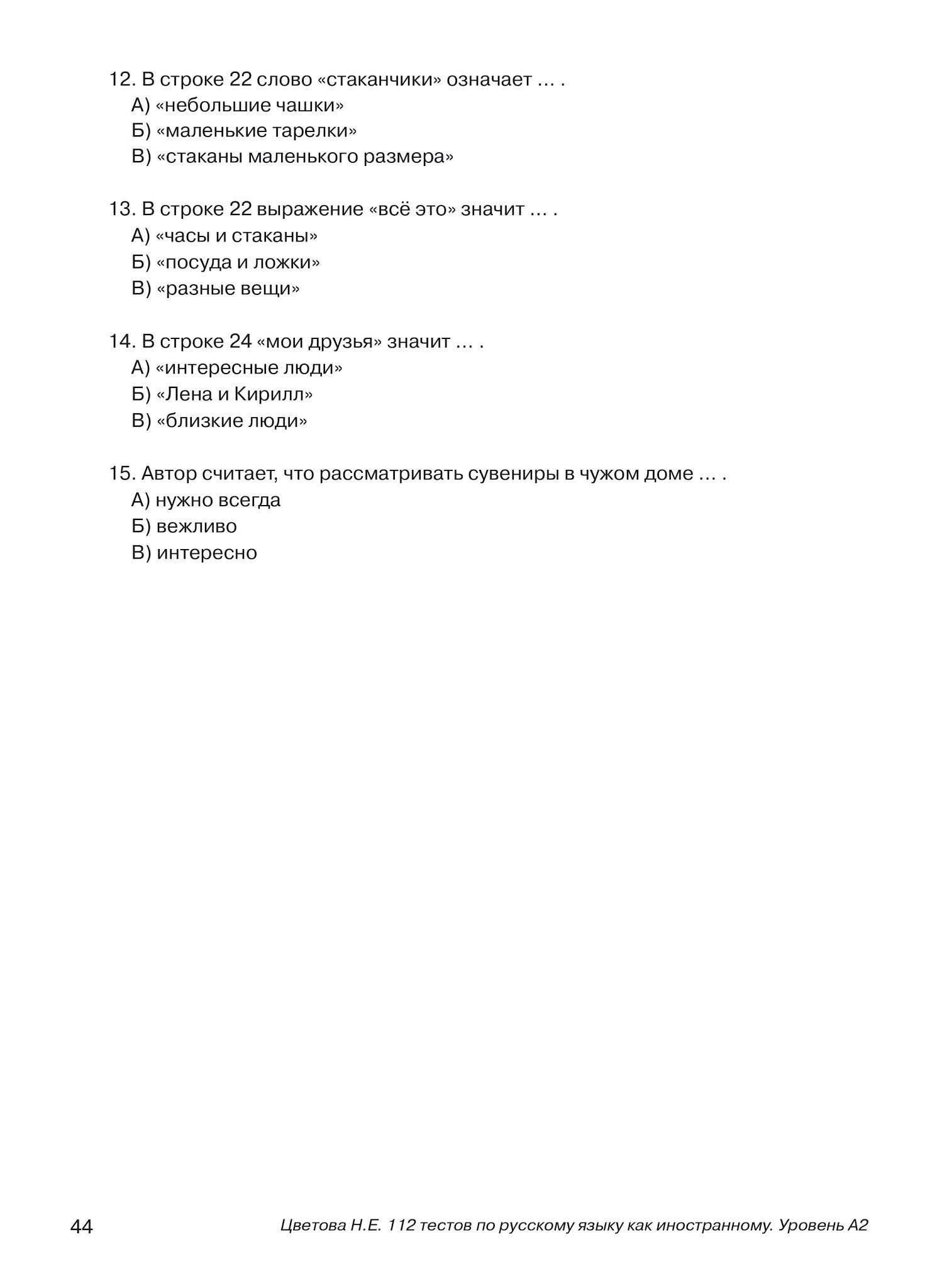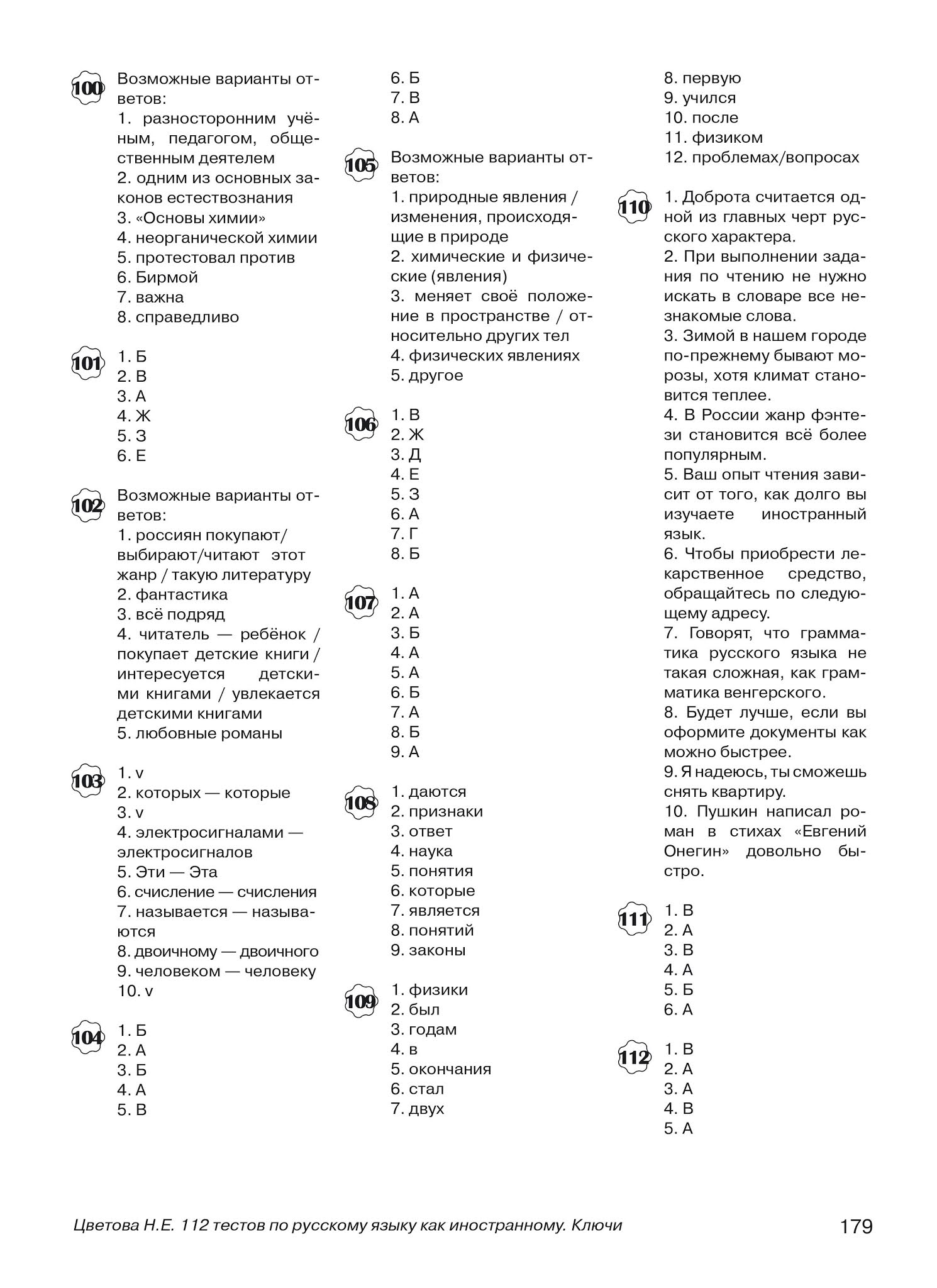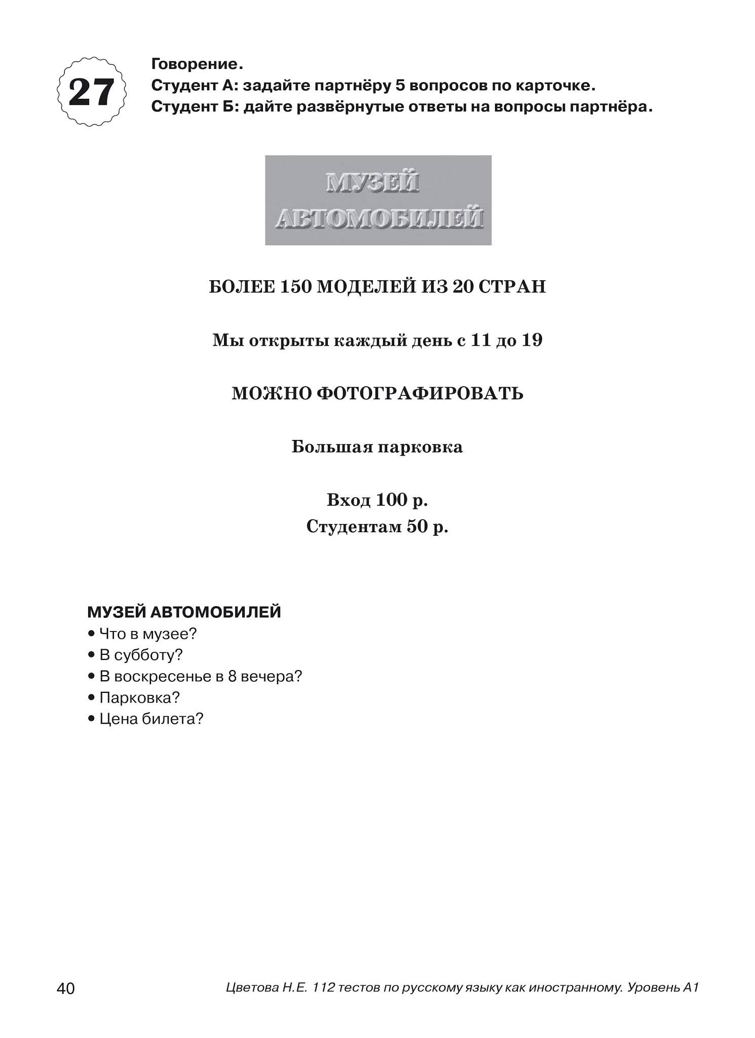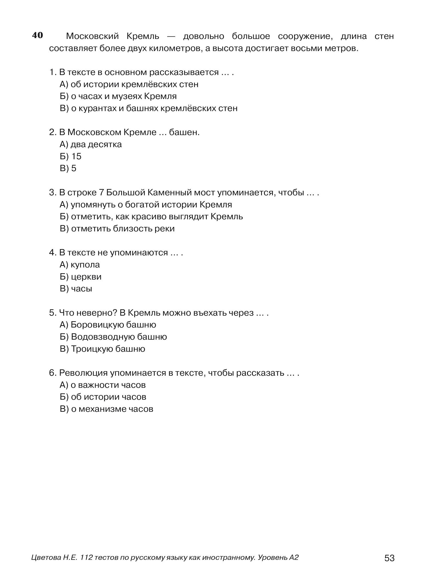 Н.Е.ЦВЕТОВА. 112 тестов по РКИ — А1 -В1