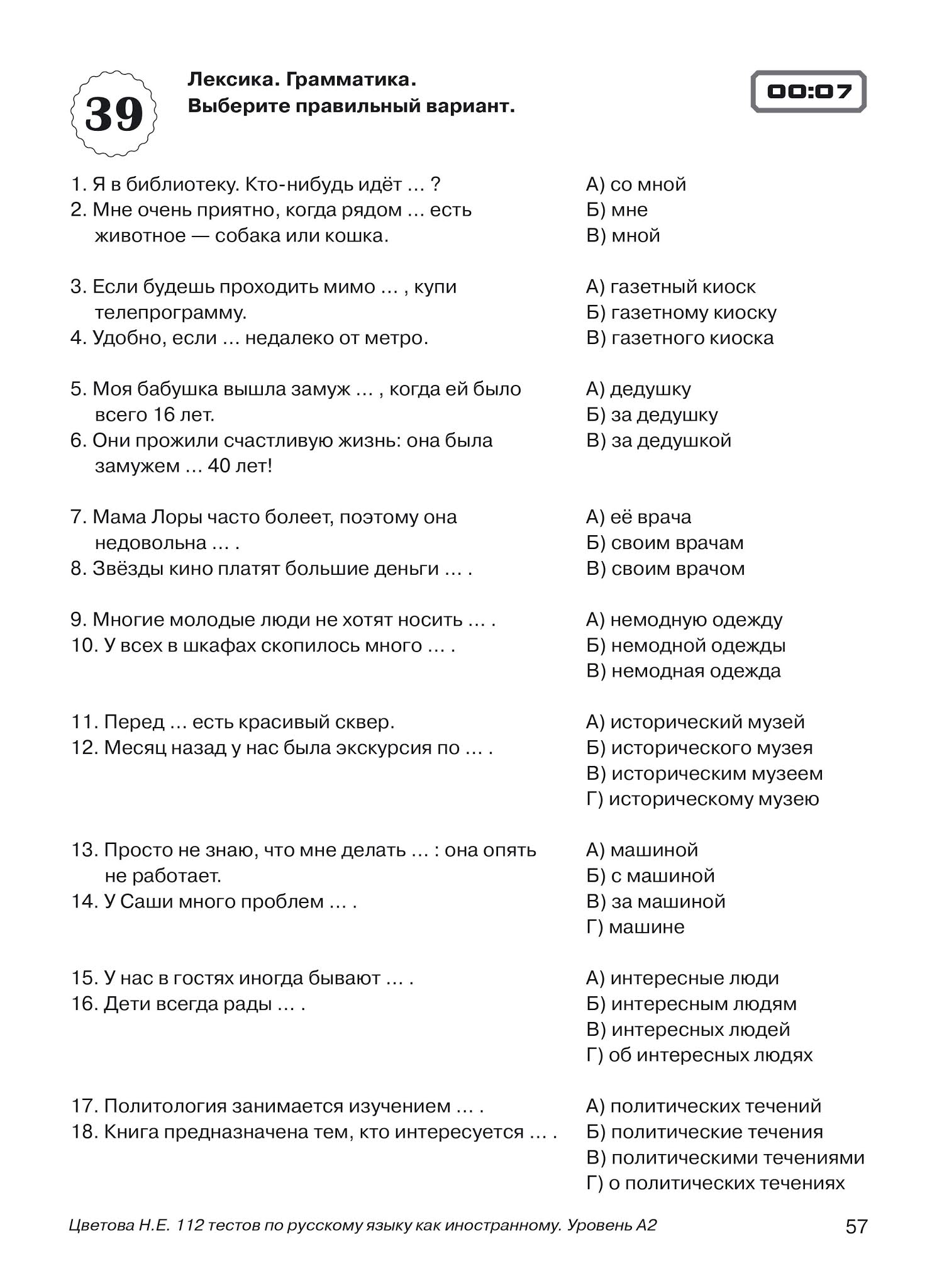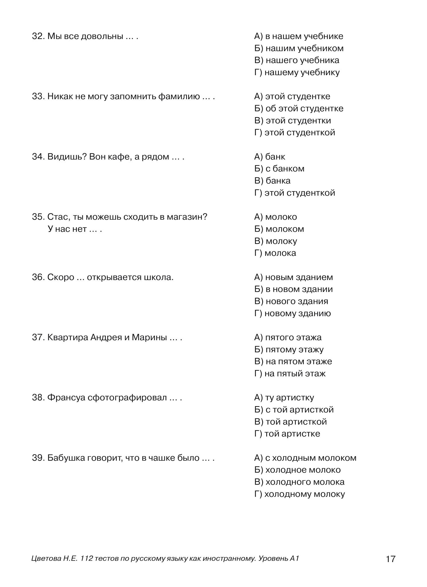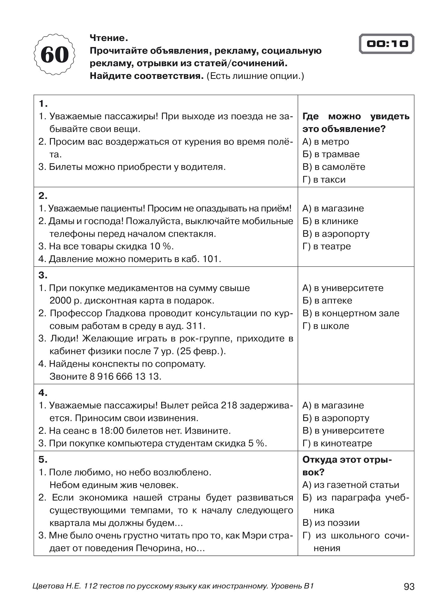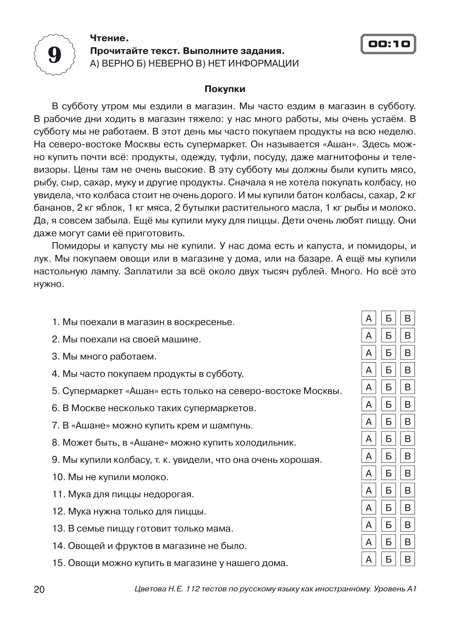 Н.Е.ЦВЕТОВА. 112 тестов по РКИ — А1 -В1