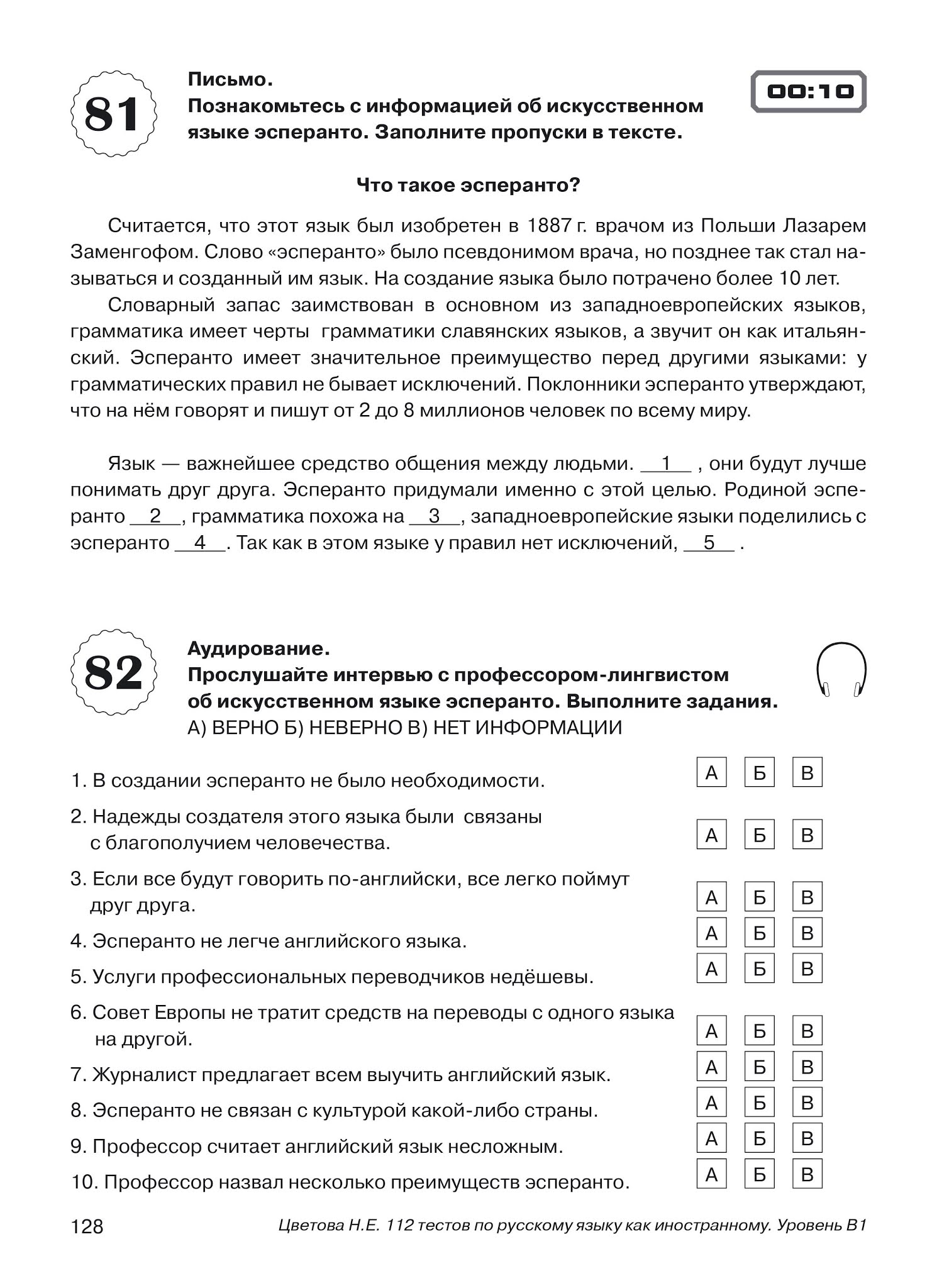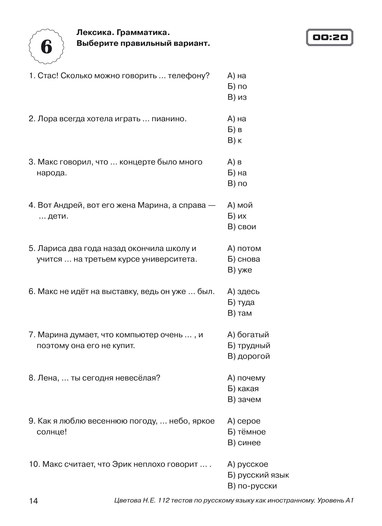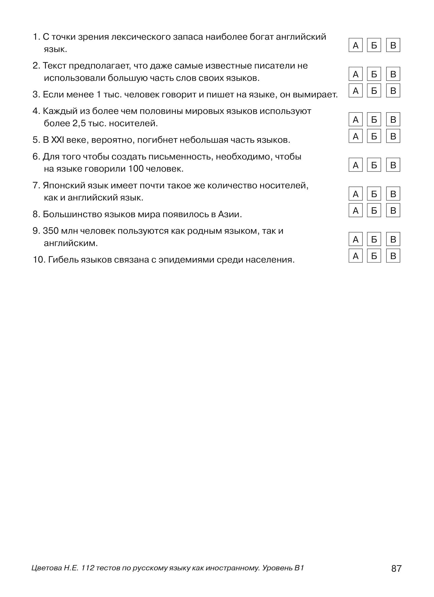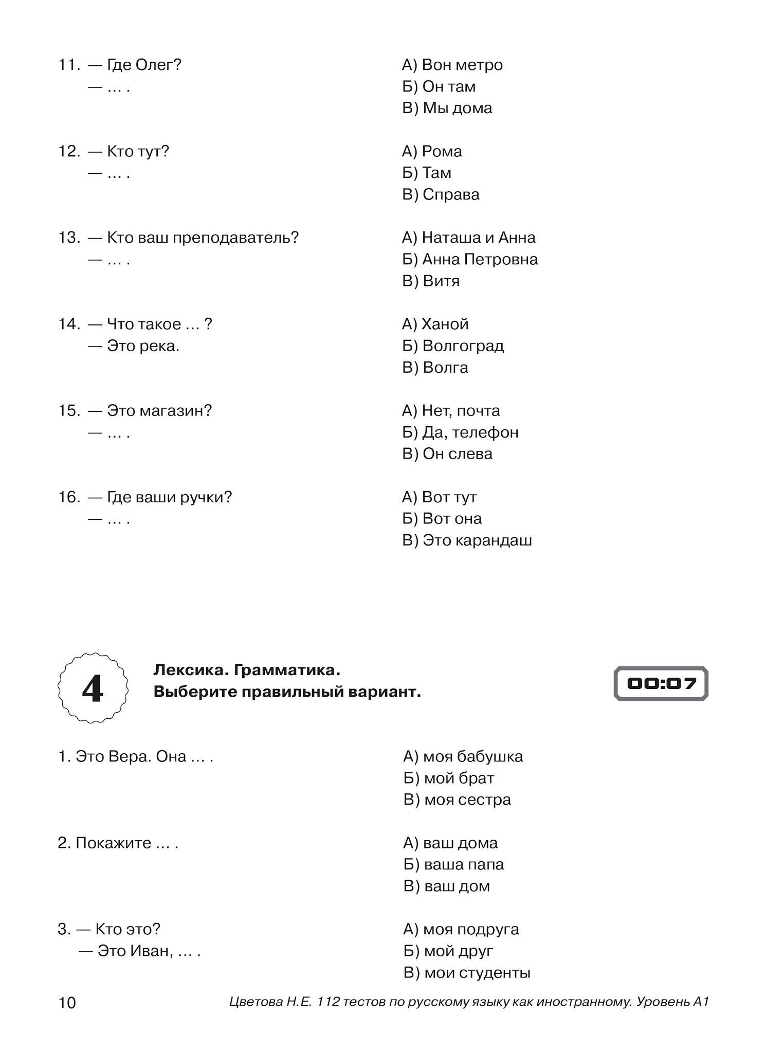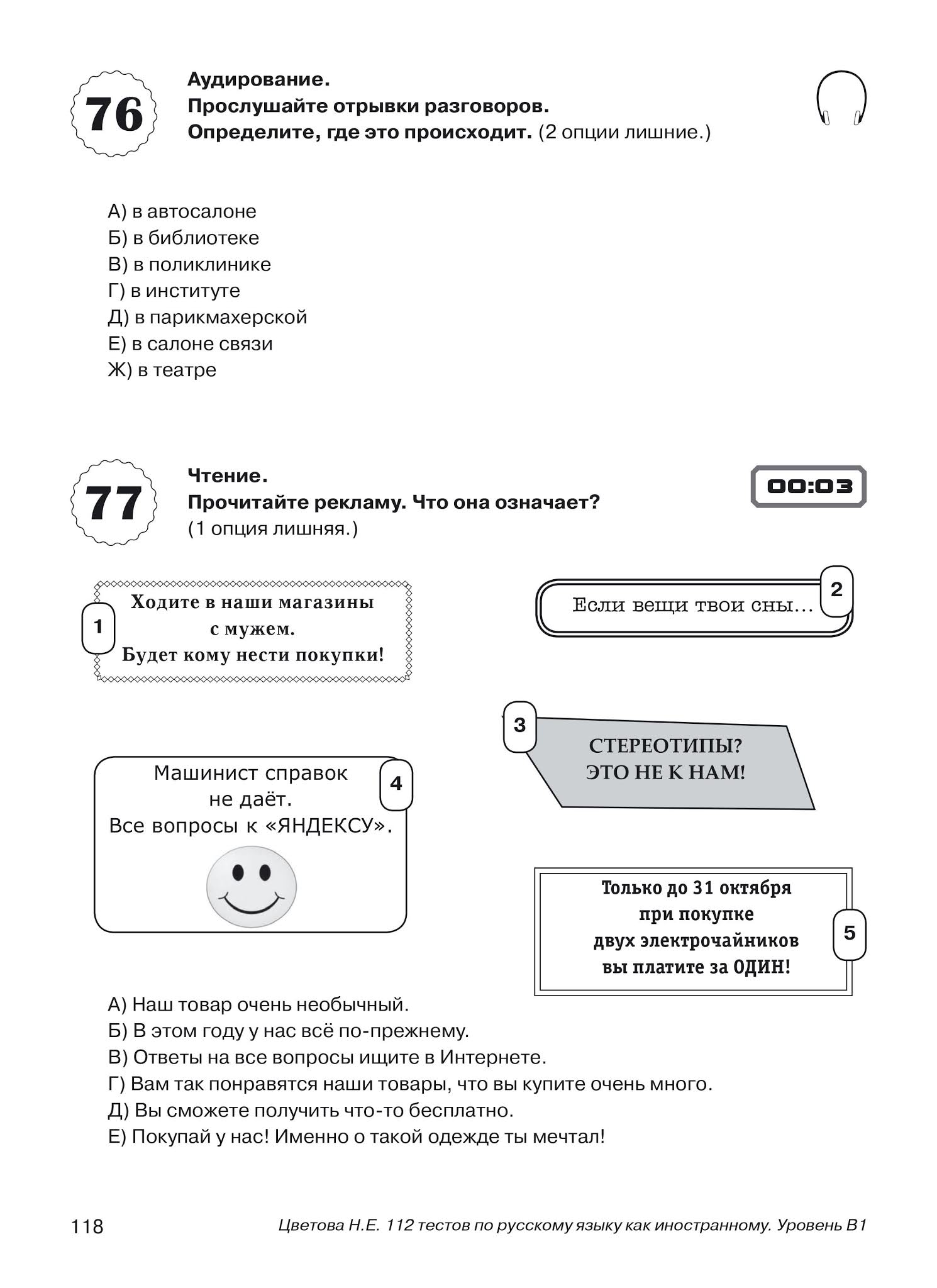 Н.Е.ЦВЕТОВА. 112 тестов по РКИ — А1 -В1