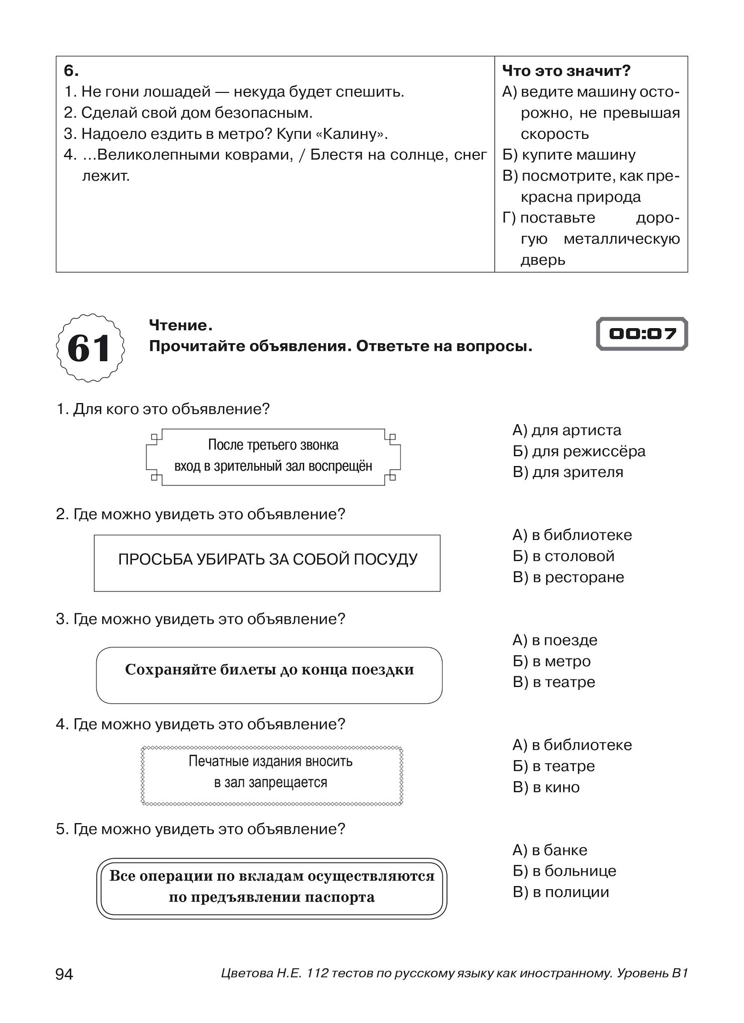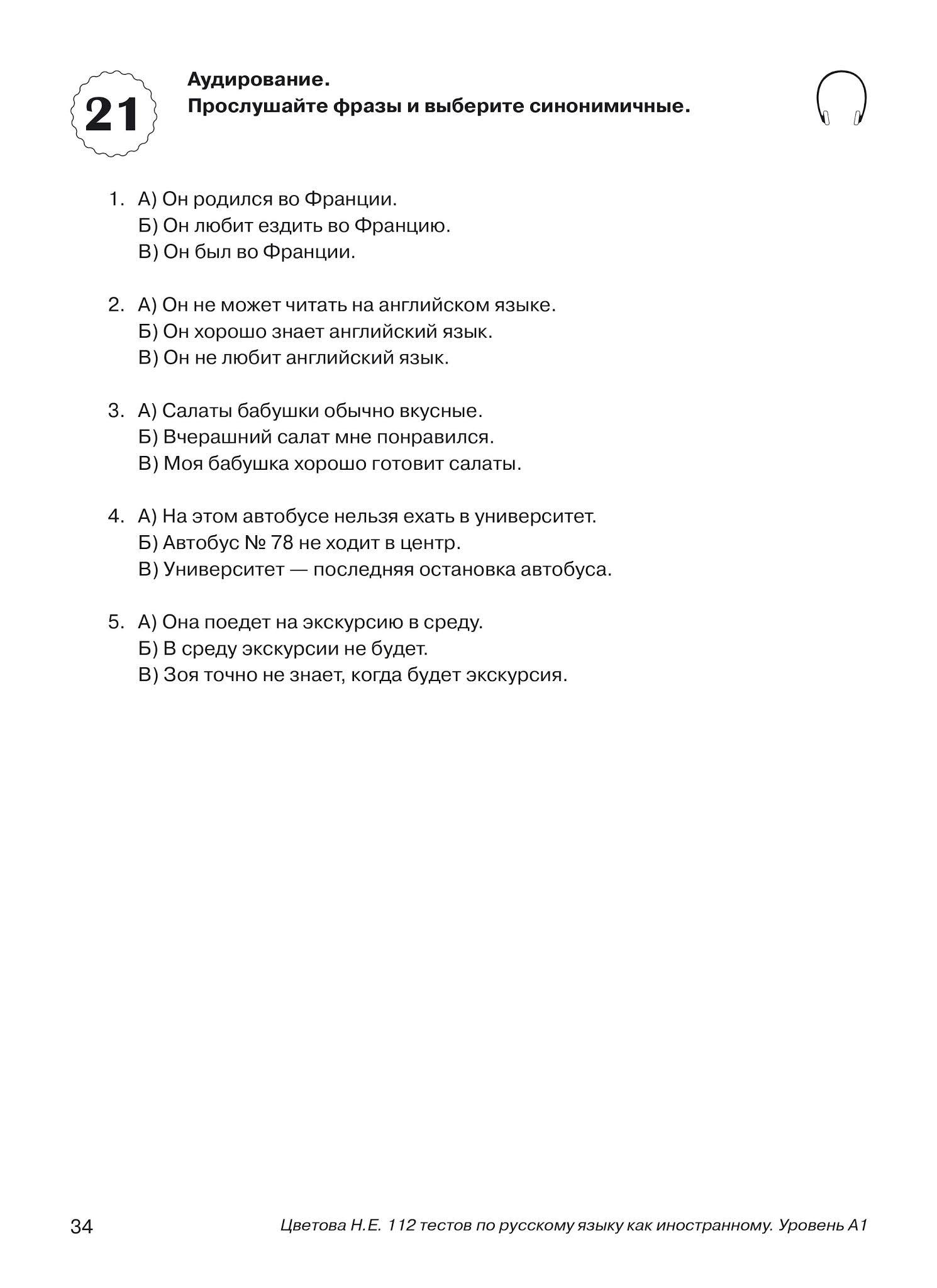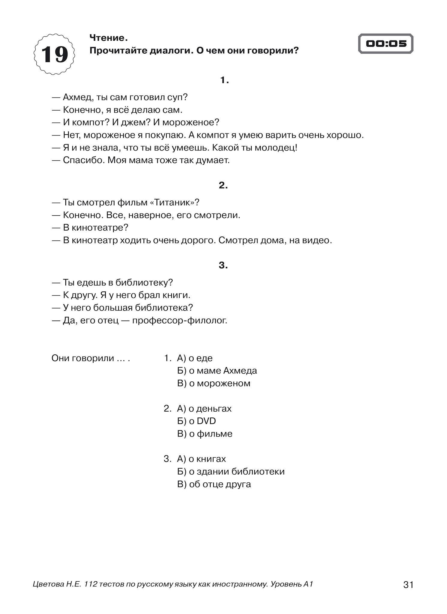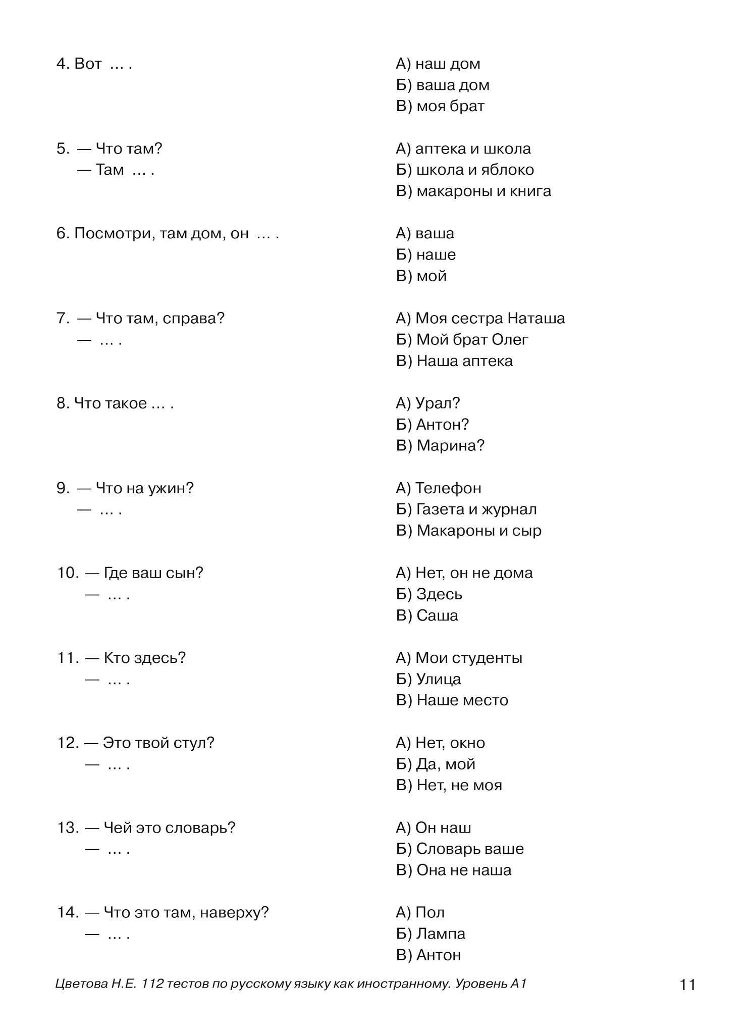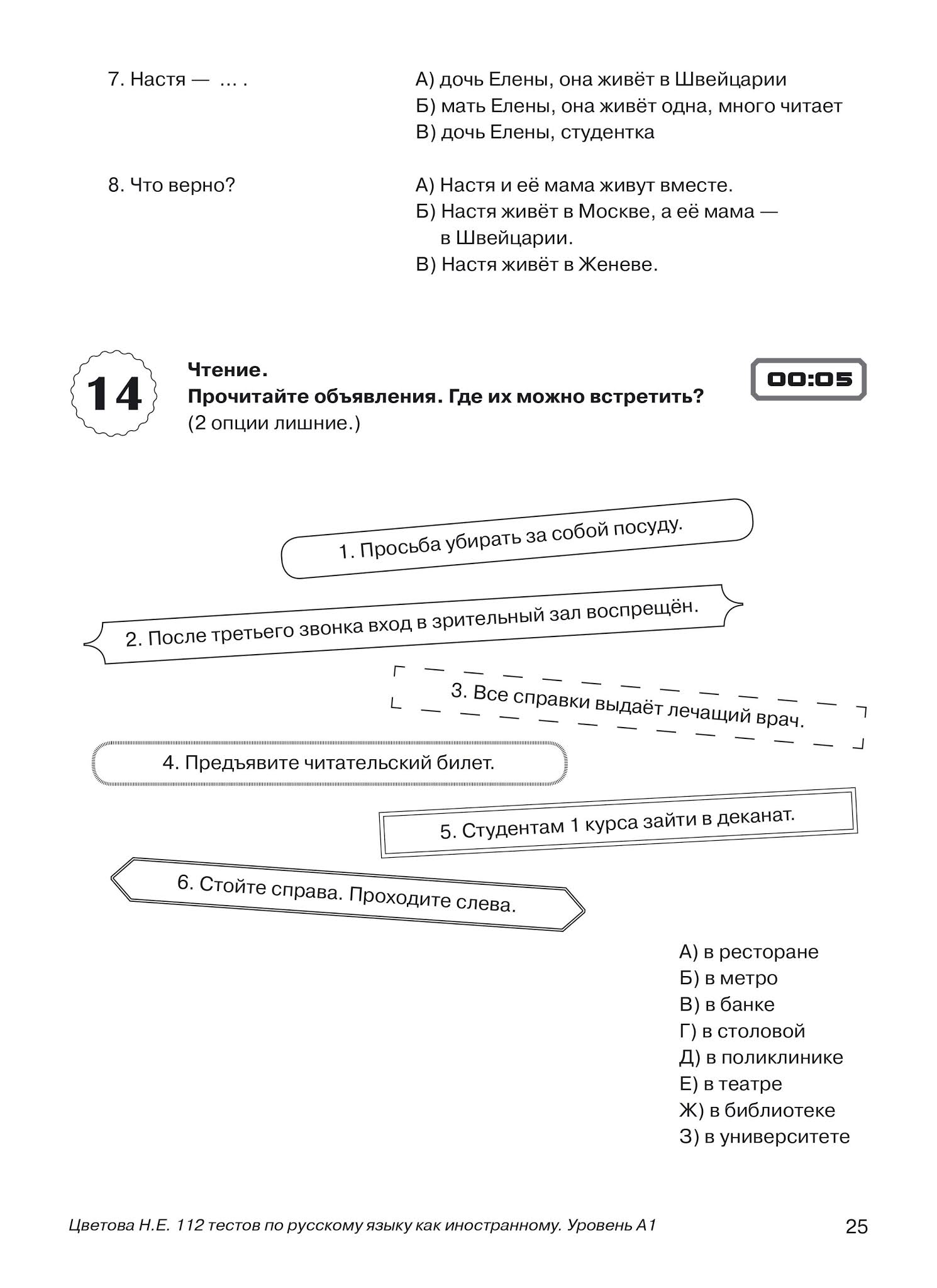 Н.Е.ЦВЕТОВА. 112 тестов по РКИ — А1 -В1