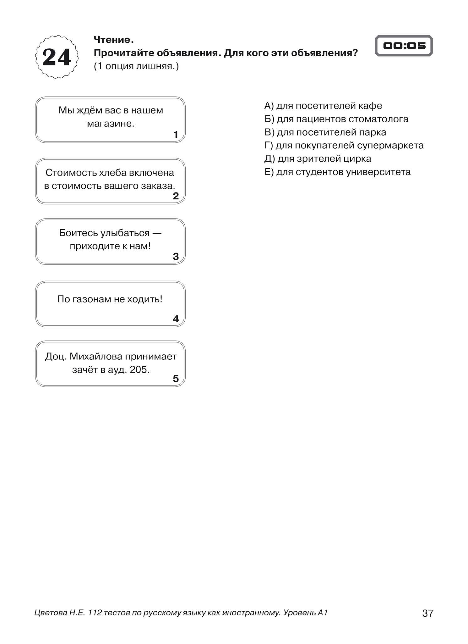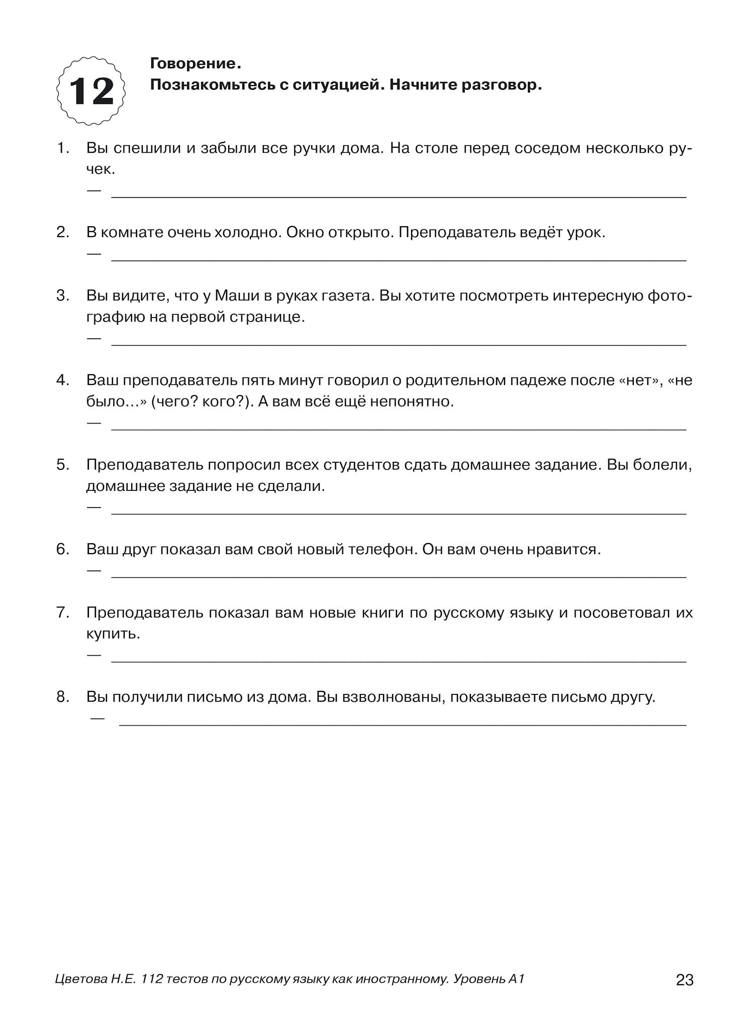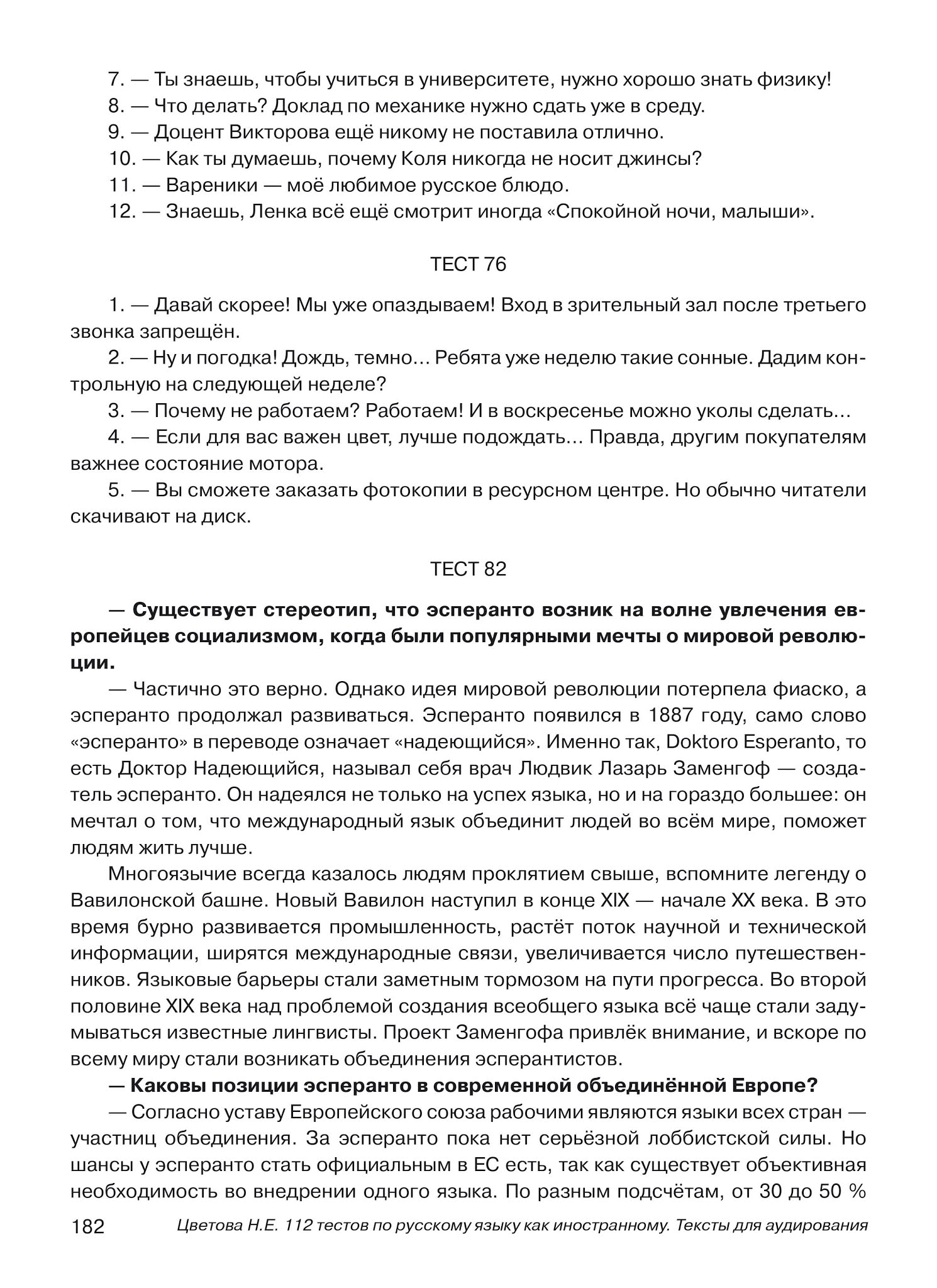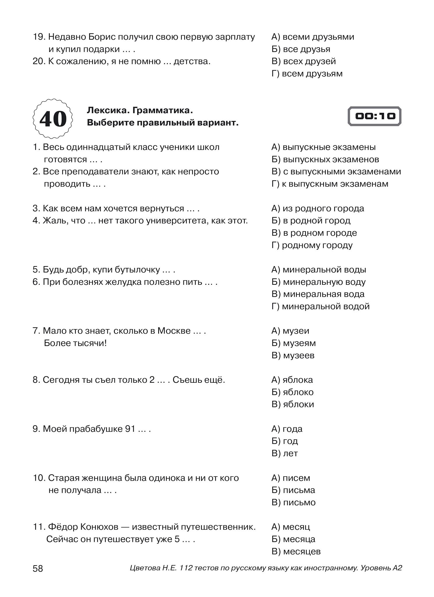 Н.Е.ЦВЕТОВА. 112 тестов по РКИ — А1 -В1