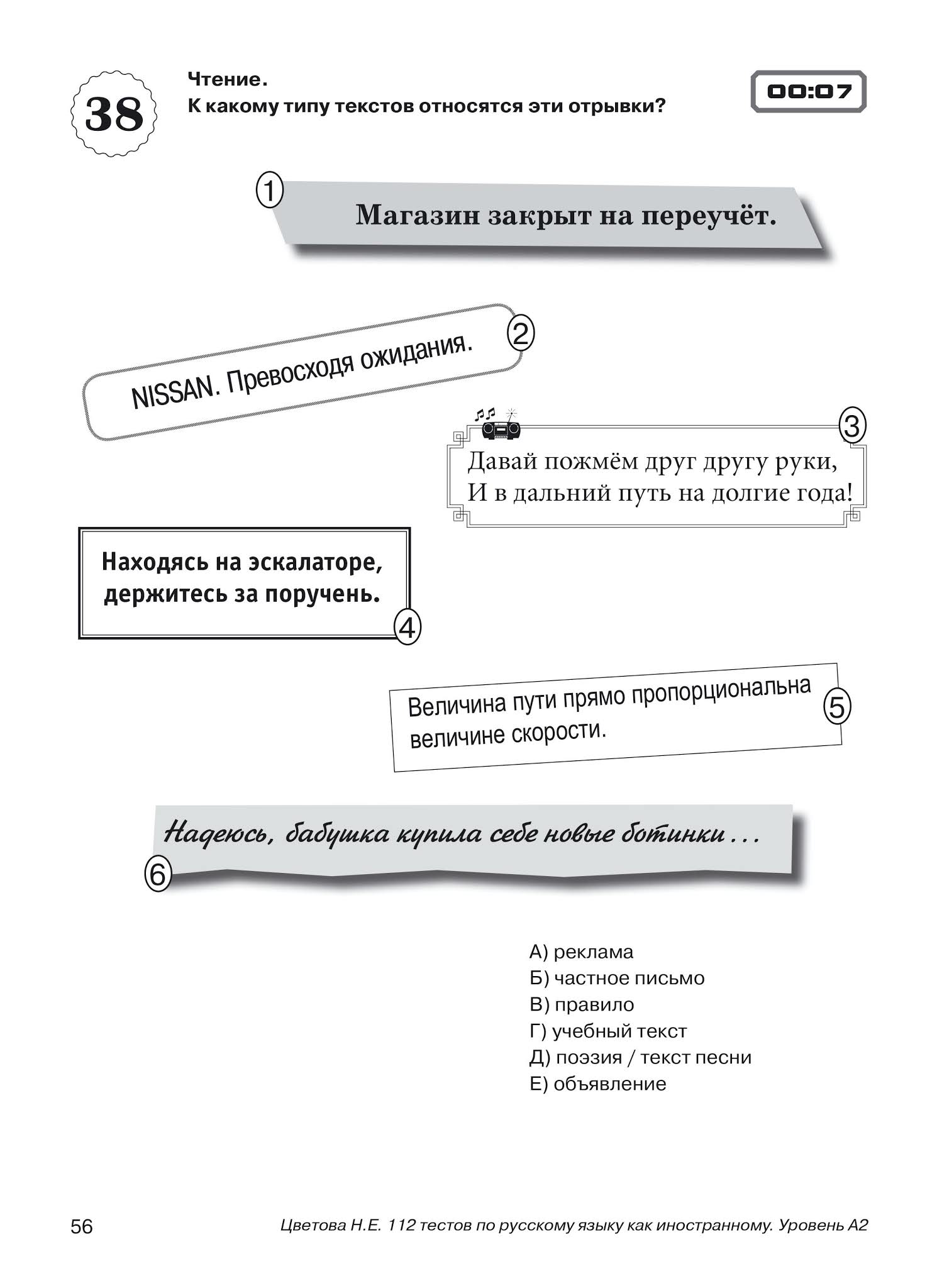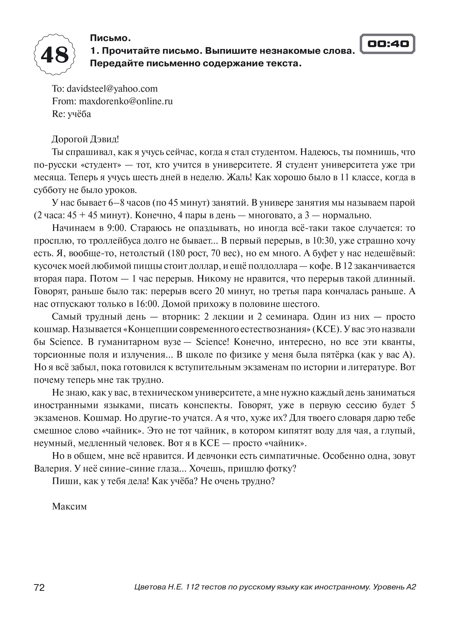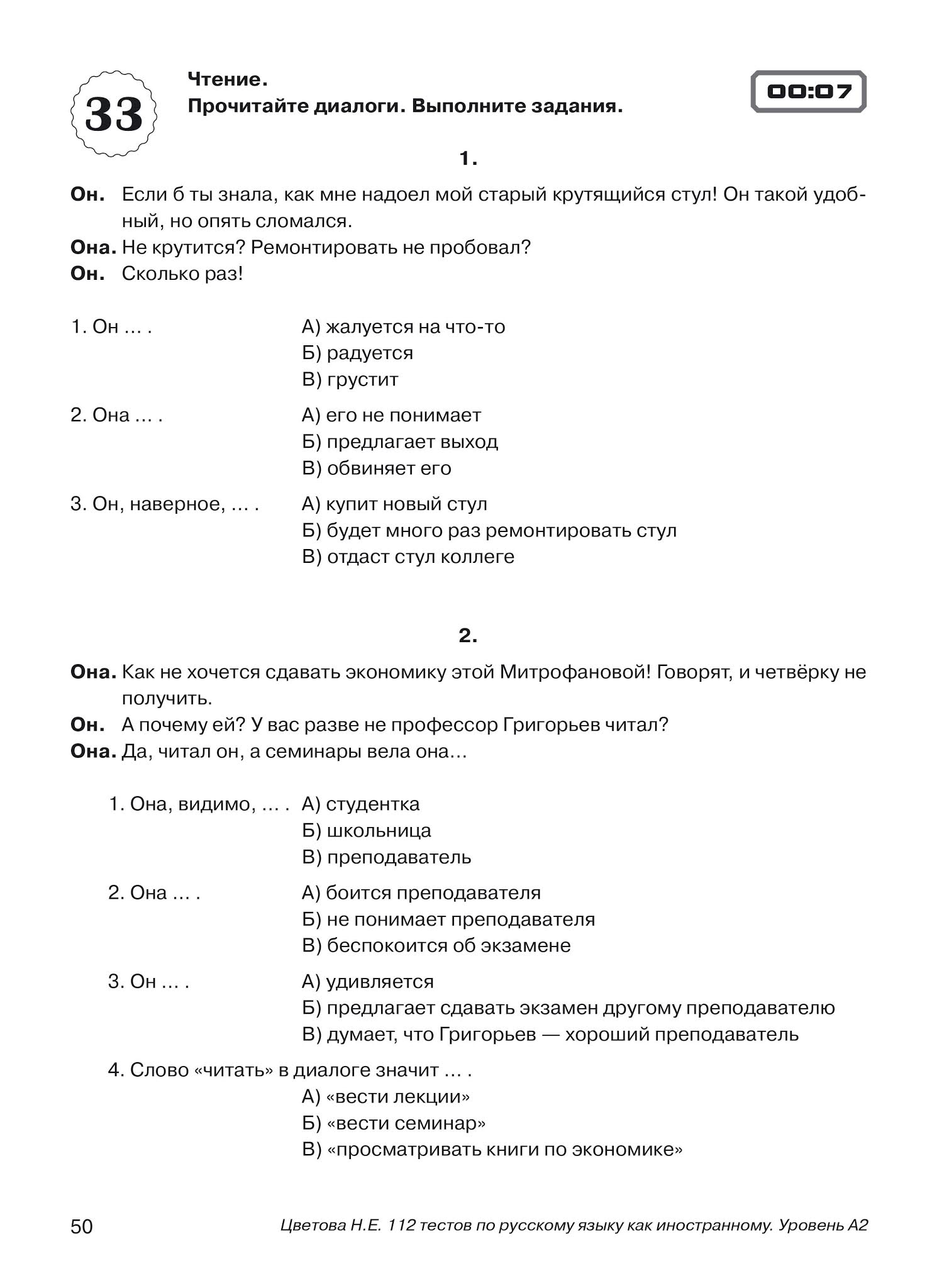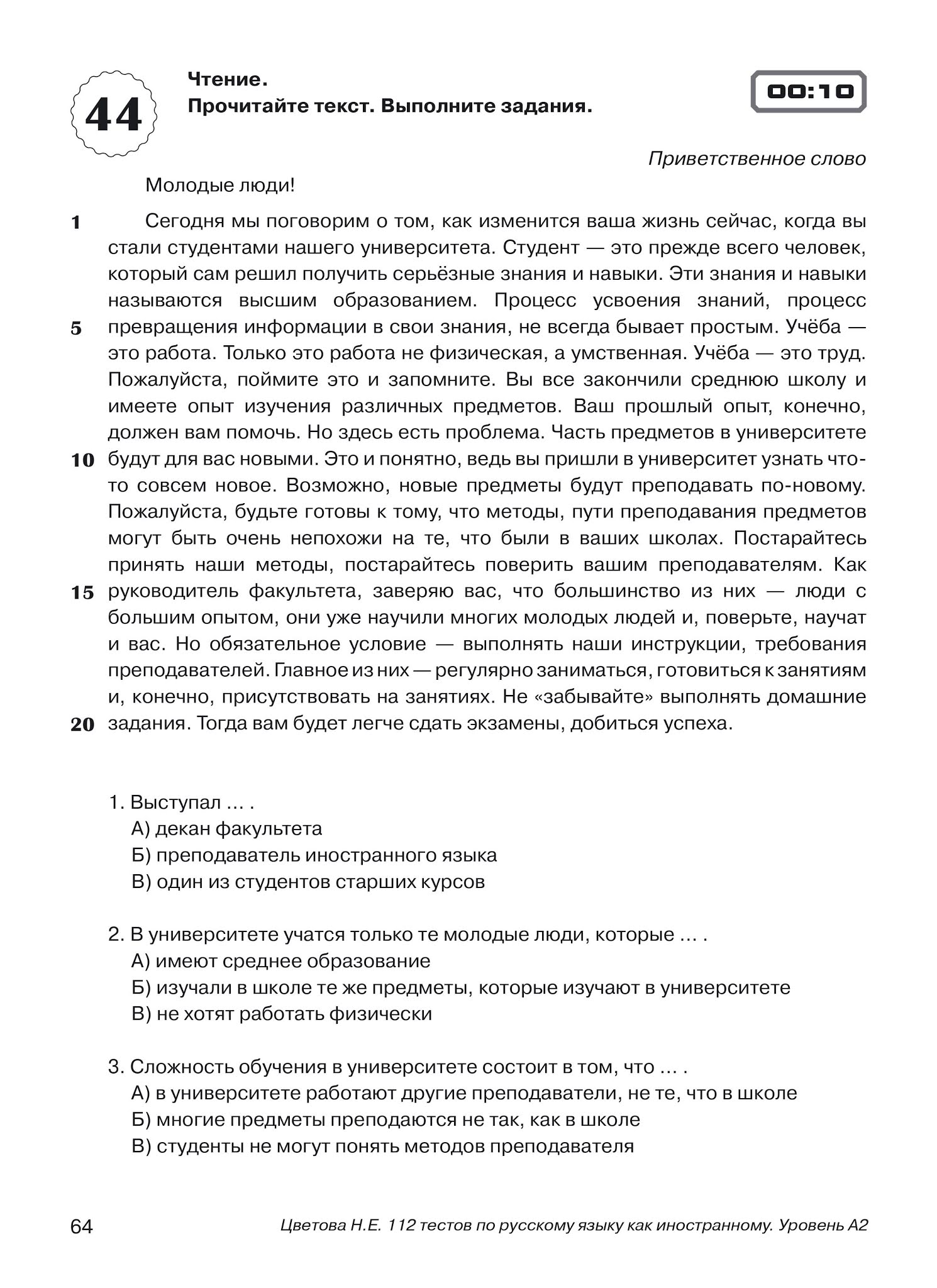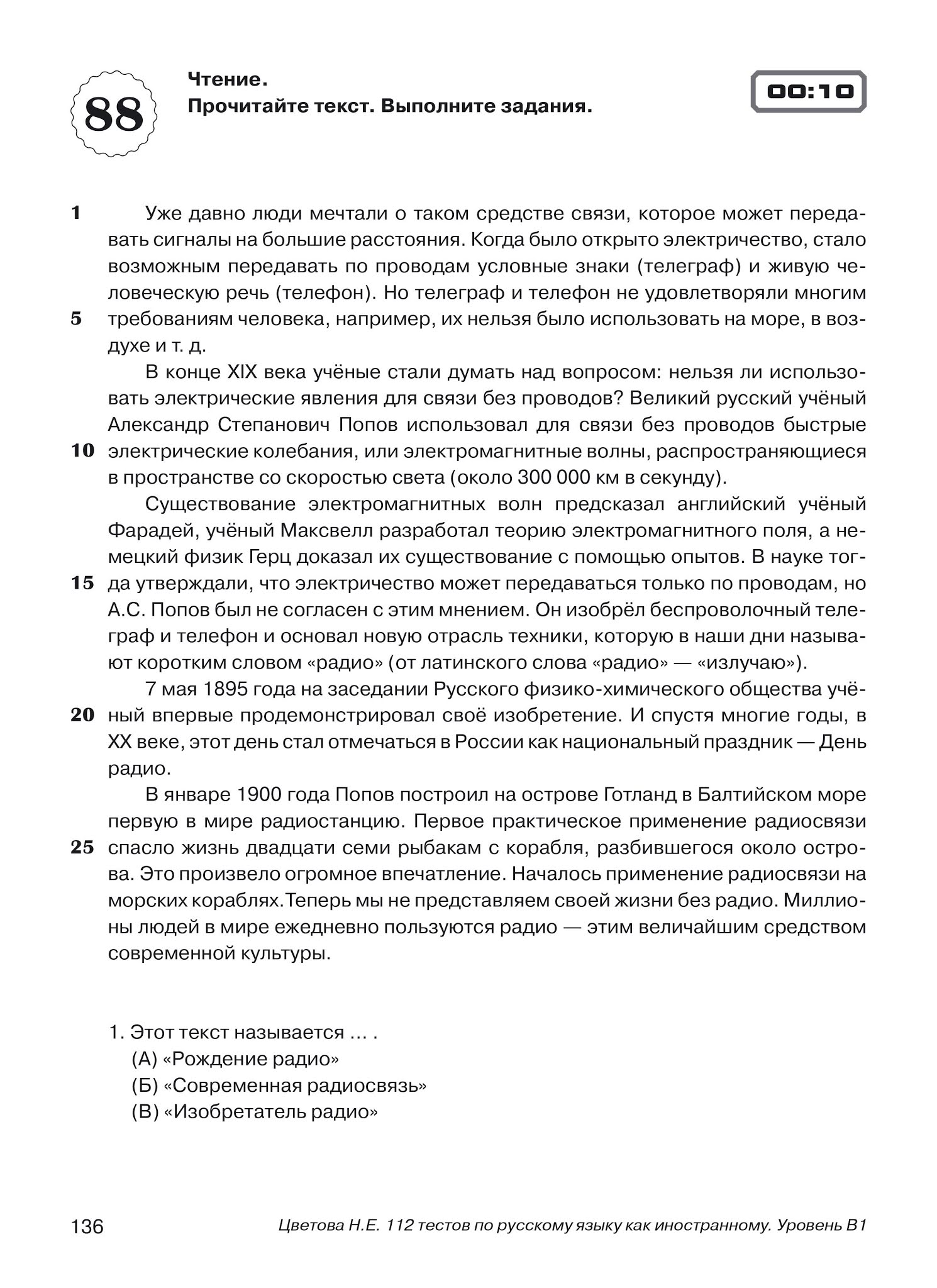 Н.Е.ЦВЕТОВА. 112 тестов по РКИ — А1 -В1