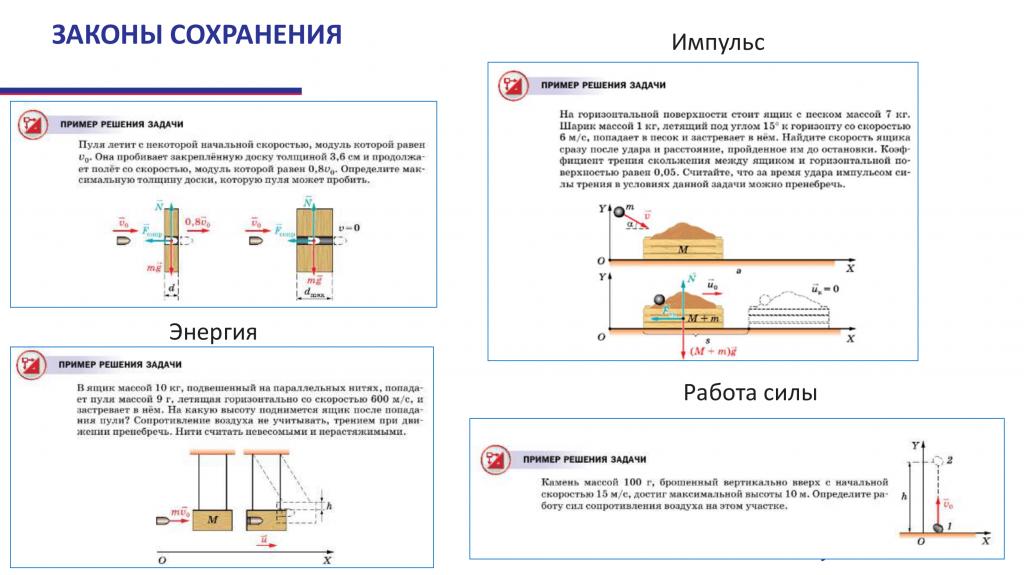 Проверяет понятие импульса и энергии. Законы сохранения импульса и энергии в стандартных ситуациях