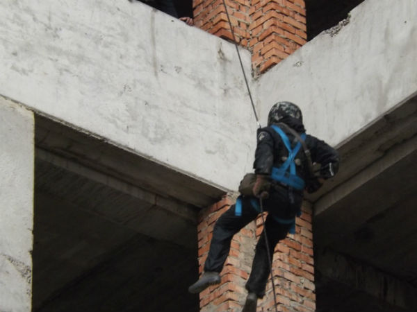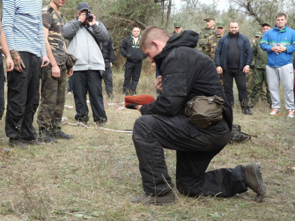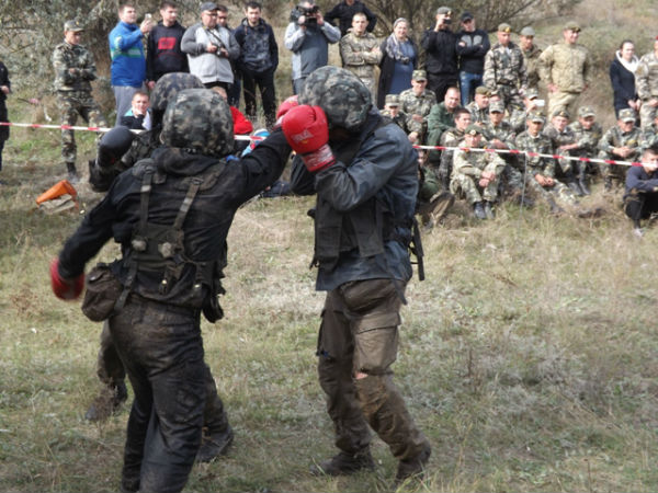 Перед финальным спаррингом претенденты выполнили спуск в карьер, переползли по-пластунски под действенным огнем противника и выполнили специальные стрелковые упражнения из АК.