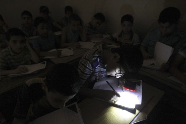 Студент с фонариком во время экзамена в школе в районе Аль-Шаар в Алеппо 5 июня 2013 году.